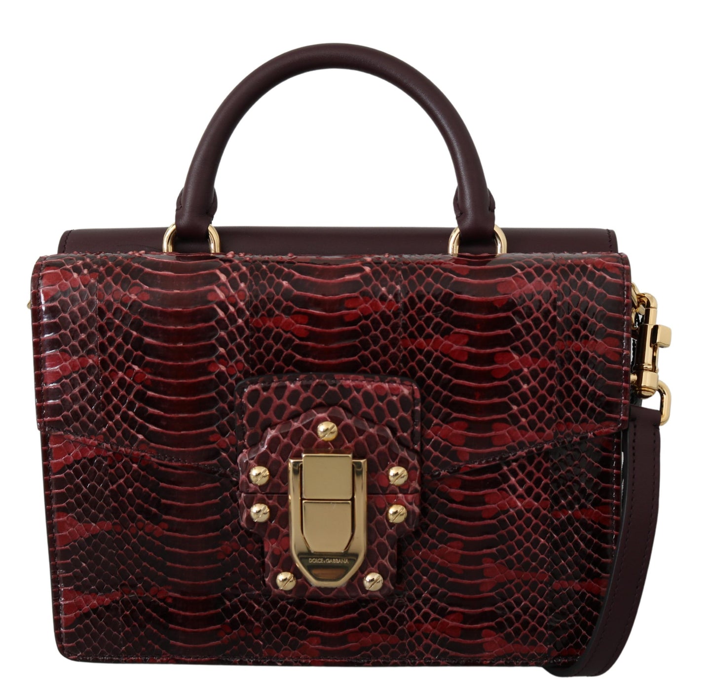 Embrace sophisticated elegance with the Dolce & Gabbana Lucia Bag, crafted for the discerning fashionista. This stunning accessory, brand new with tags, is an authentic piece that boasts impeccable craftsmanship and an air of luxury. The perfect blend of 47% Serpente Di Terra and 53% leather exudes an exotic charm, while the rich Bordeaux hue complemented by gold metal detailing creates a striking contrast. It’s designed for versatility with a detachable and adjustable shoulder strap, and an interior slot pocket encased in pink leather lining. The logo engraved metal hardware adds a signature touch to this Italian-made masterpiece. It’s not just a bag, but a statement of high fashion and exclusivity.