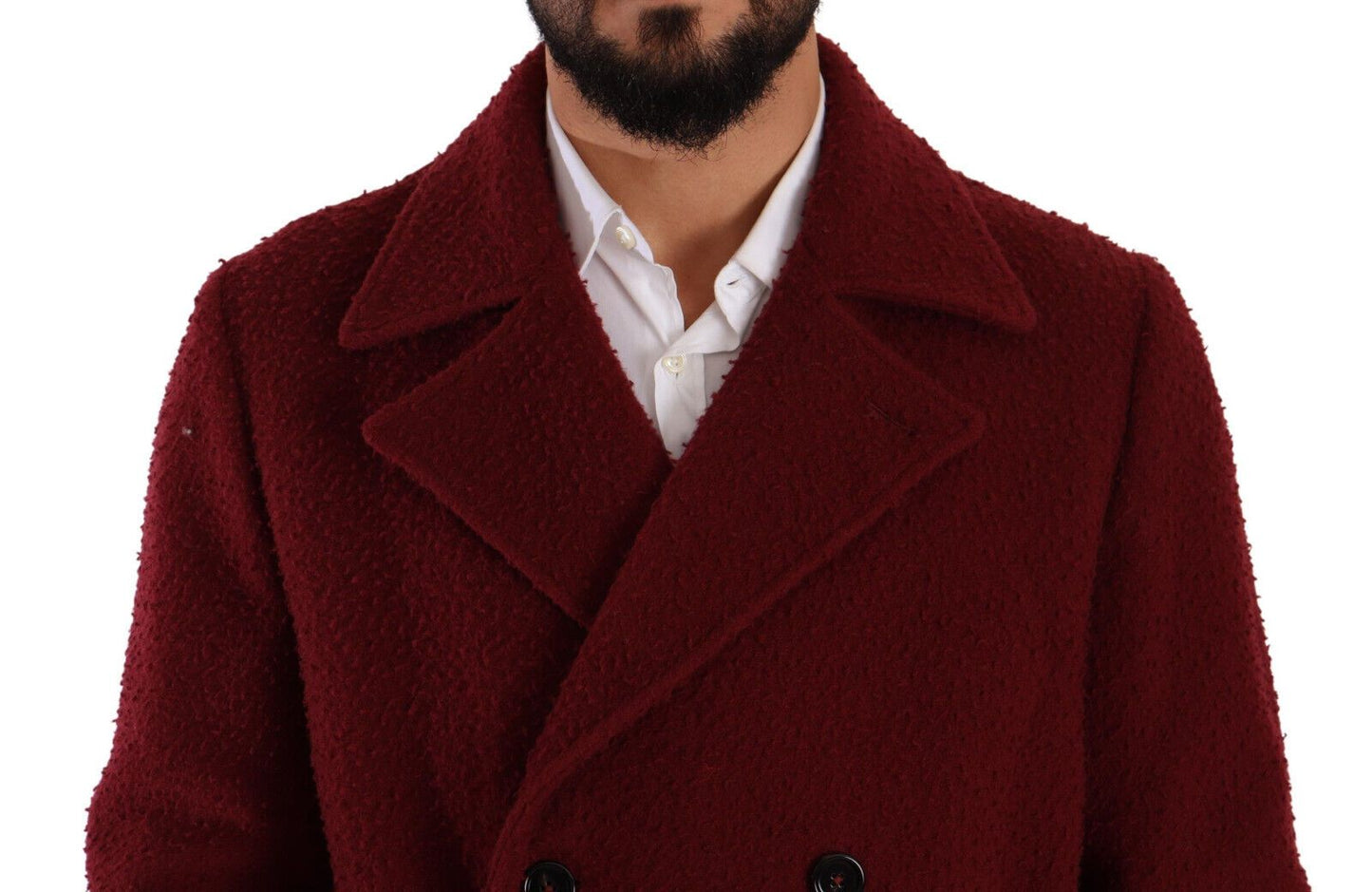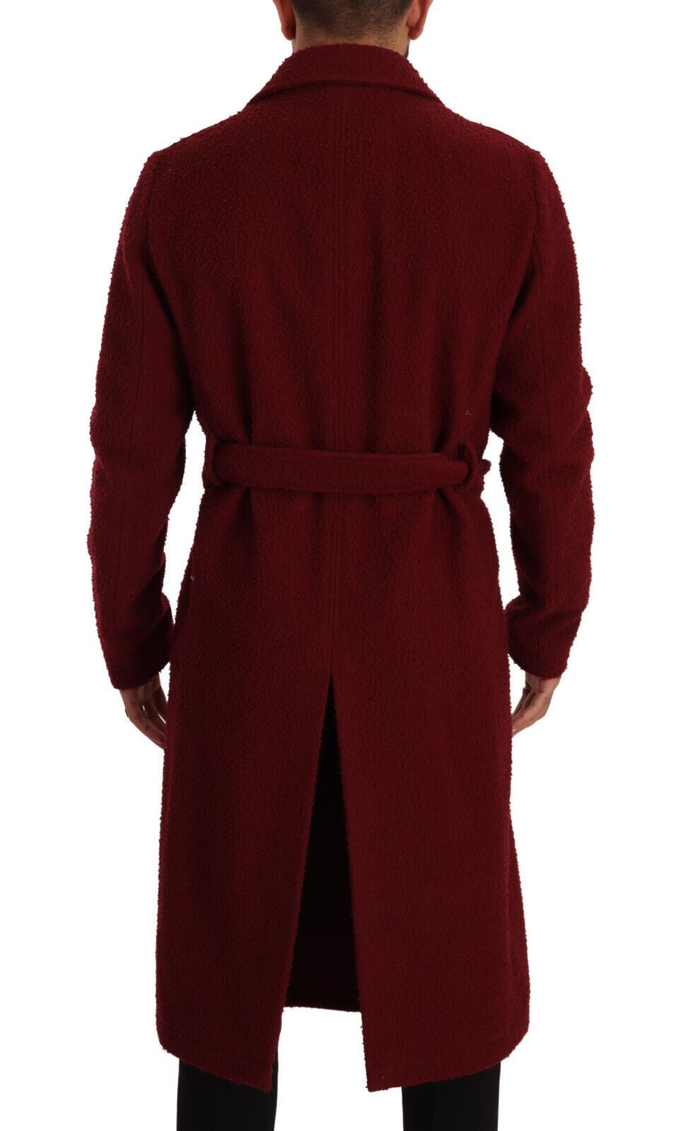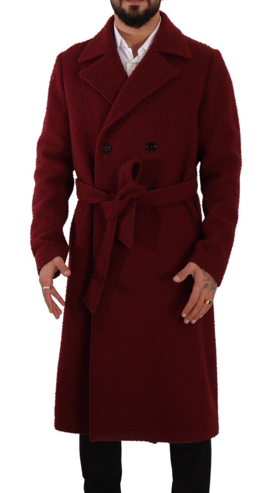 Embrace sophistication with this absolutely stunning overcoat from Dolce & Gabbana. Crafted from luxurious 100% wool and lined with pure silk, this brand new, burgundy double-breasted jacket is a sartorial staple for any fashion connoisseur. Featuring a sleek button and waist belt closure, this coat provides both style and functionality with its multiple pockets. Indulge in Italian craftsmanship and elevate your wardrobe with this statement piece.