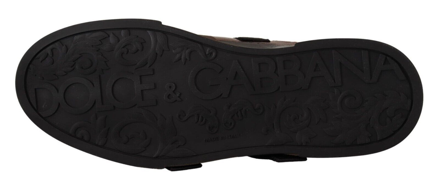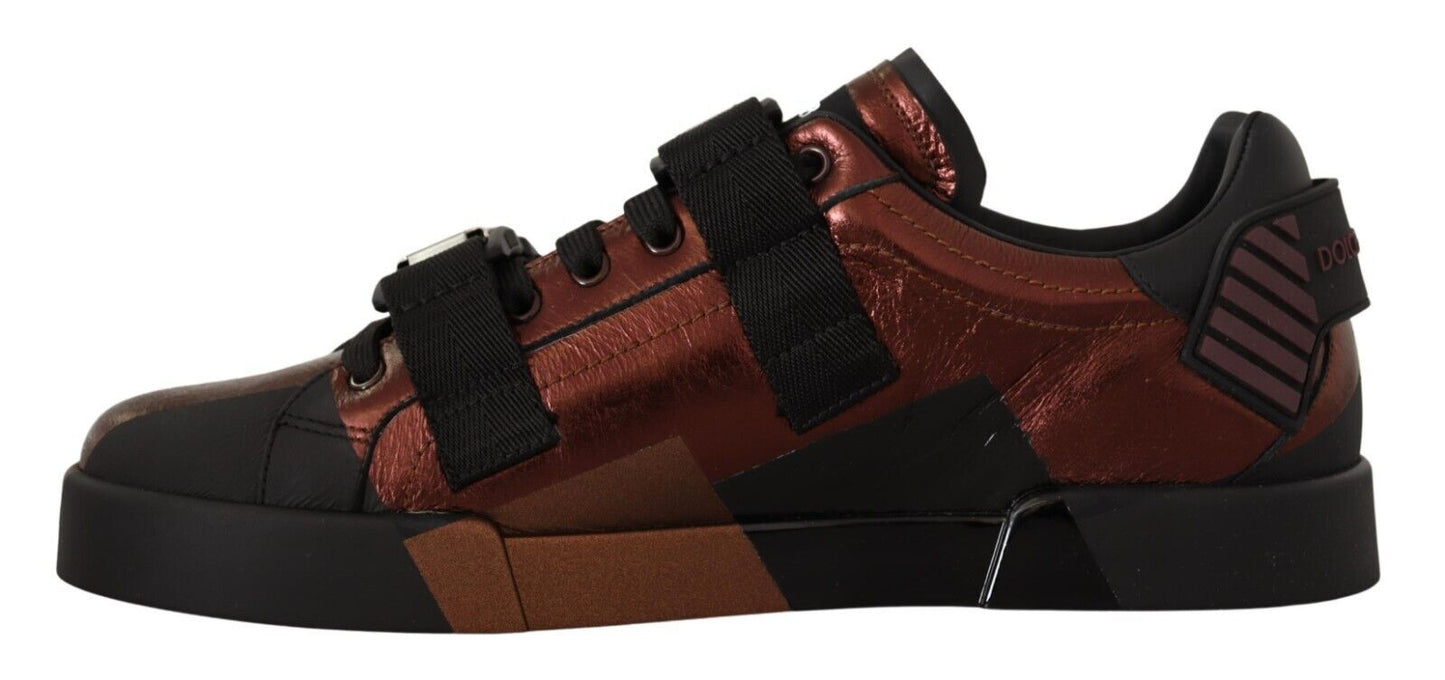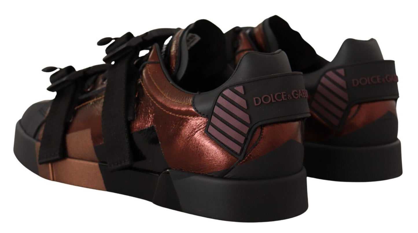 Step into luxury with these gorgeous new, 100% Authentic sneakers from Dolce & Gabbana. Designed for the stylish individual, these black and bronze low top casual sneakers feature a sleek leather construction, comfortable lace and buckle strap closure, and are finished with the brand’s iconic logo details. Perfectly crafted in Italy, they are the epitome of both comfort and high fashion. Elevate your footwear collection with this exquisite pair that combines durability with a cutting-edge design.