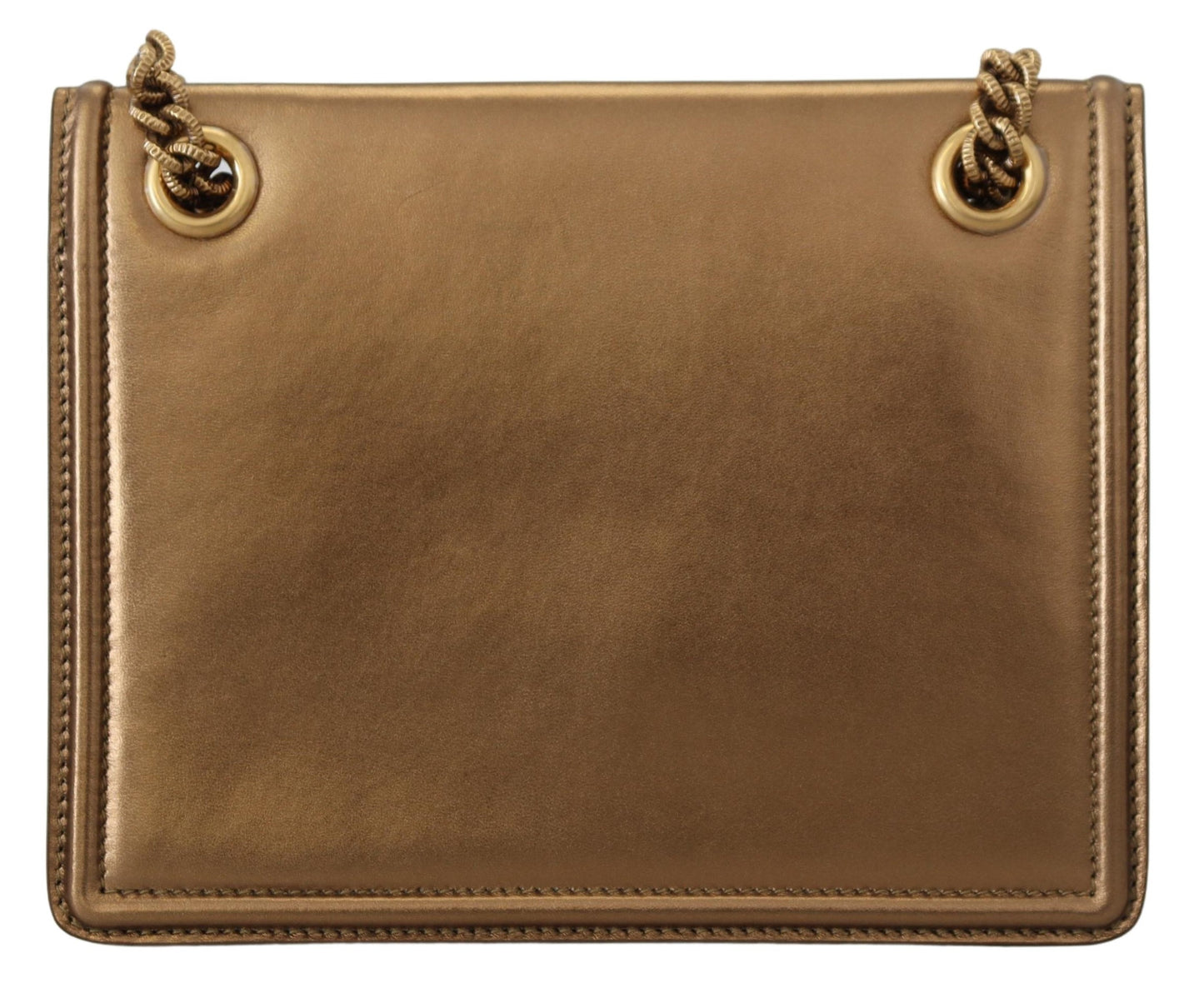 Elegant Bronze Leather Shoulder Bag with Chain Strap