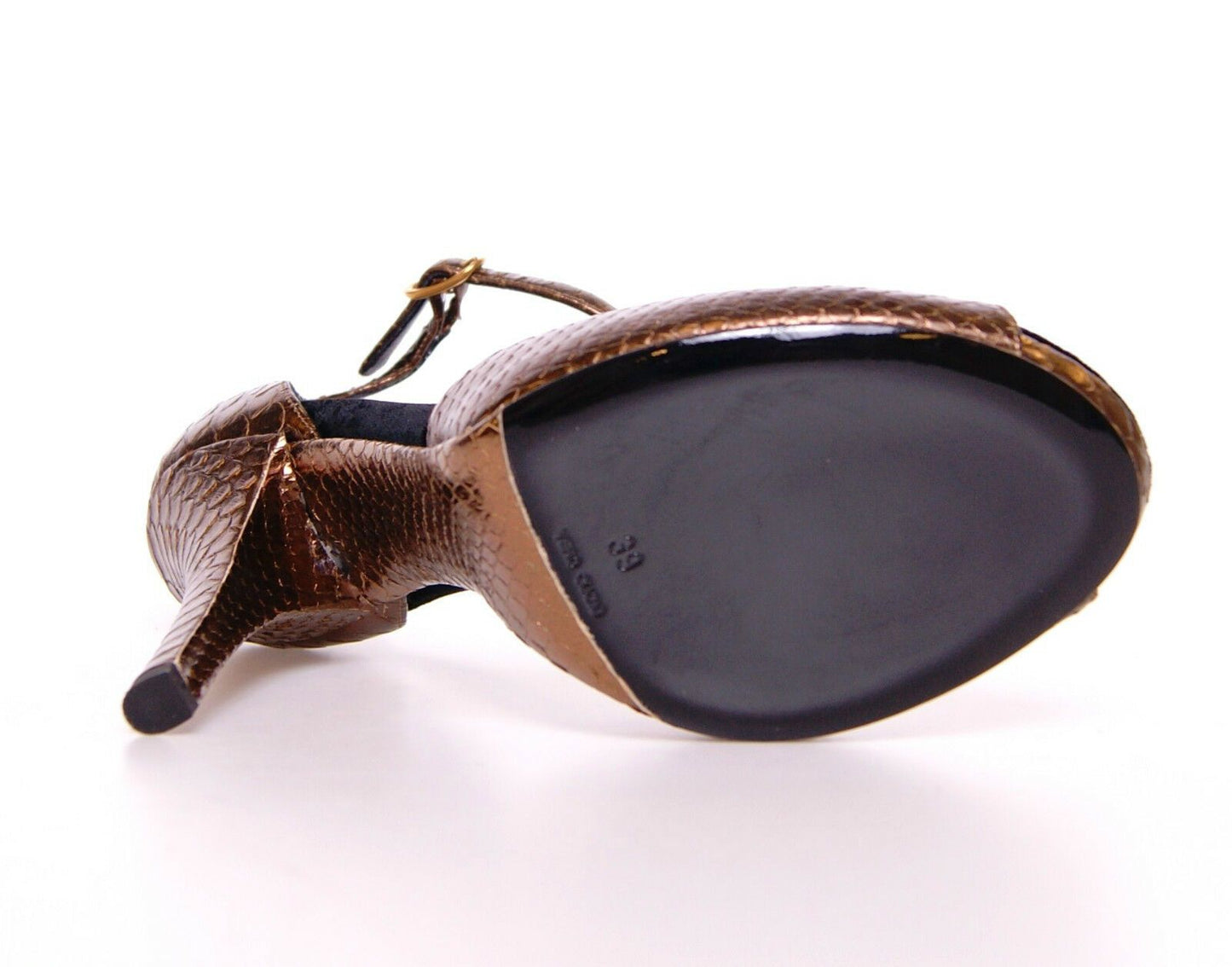 Step out in sophistication with these Dolce & Gabbana runway shoes, bringing a touch of Italian elegance to your wardrobe. Crafted from high-quality leather and designed with an adjustable ankle strap, these heels feature a chic bronze hue that complements any look. With a comfortable 1cm platform and the iconic brand’s logo detail, these shoes are not only stylish but also exude luxury and craftsmanship.