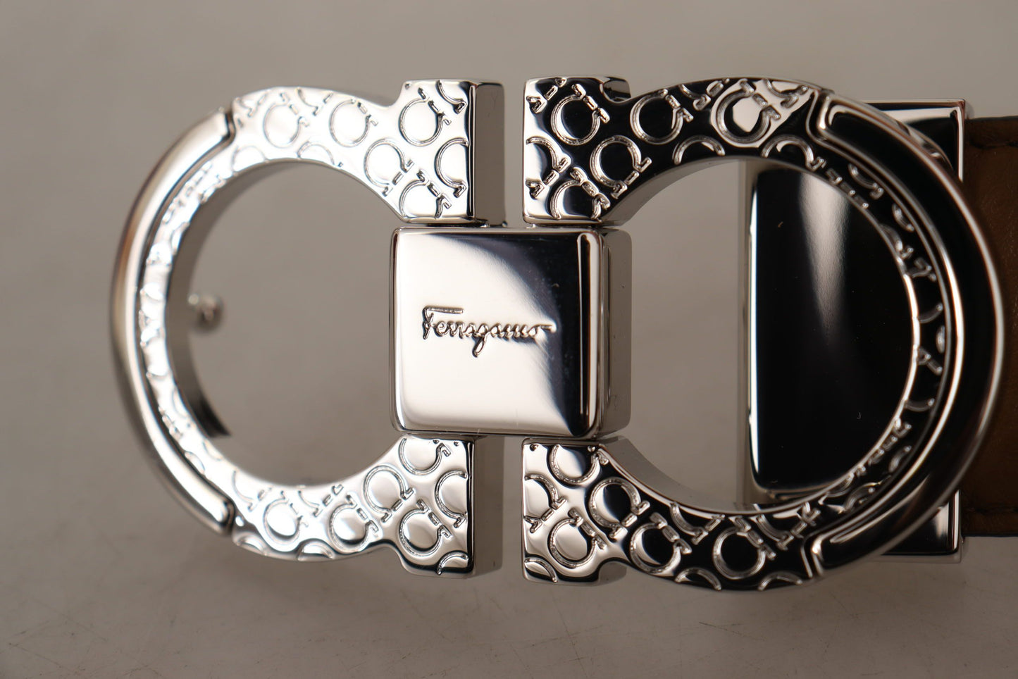 Indulge in the luxury and sophistication of Salvatore Ferragamo with this stunning, 100% authentic reversible belt, perfect for elevating any ensemble. Accompanied by original tags, dust bag, and box, this exquisite accessory boasts meticulous Italian craftsmanship and the versatility of dual color options: Rafia Brown and Black. Adorned with a sleek silver buckle and the iconic Salvatore Ferragamo logo details, this belt is a seamless blend of style and functionality.