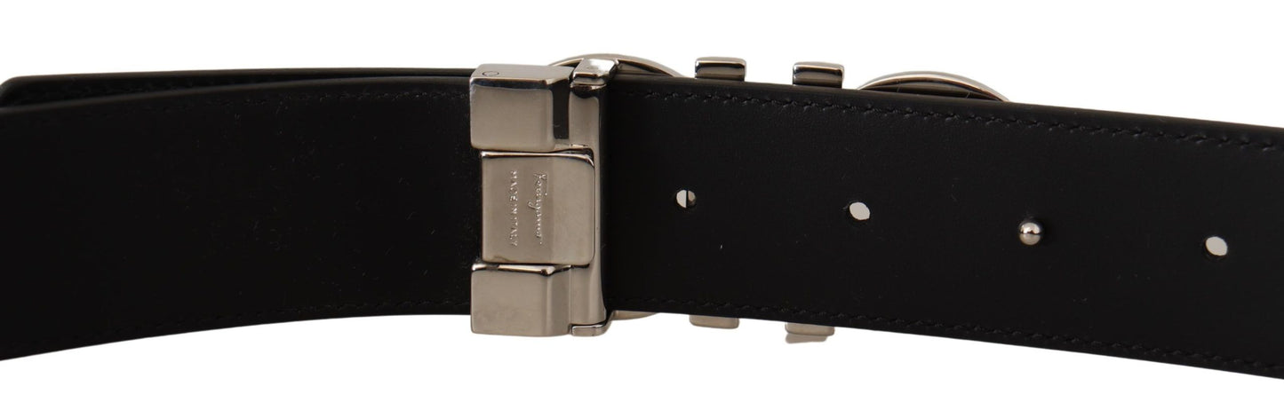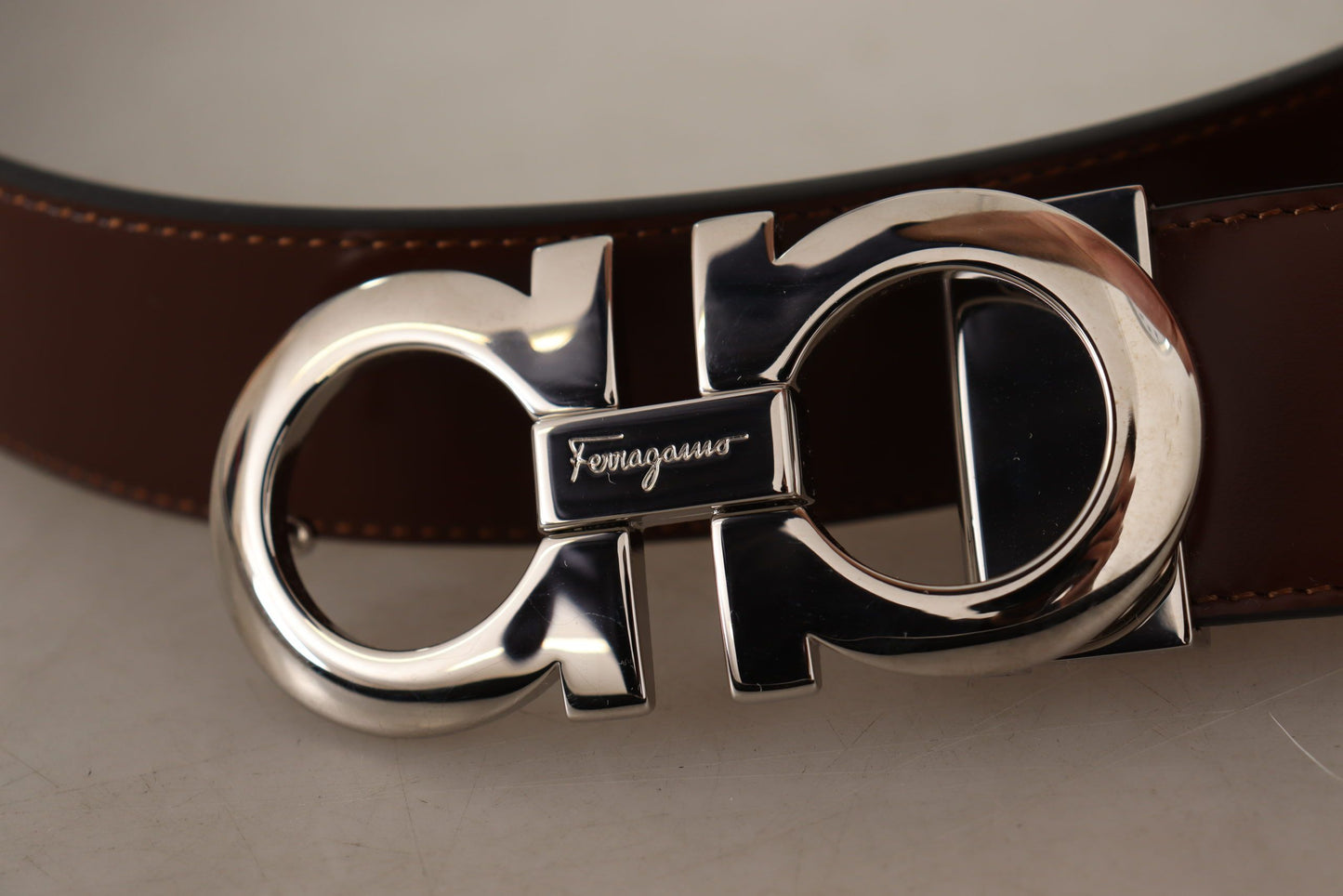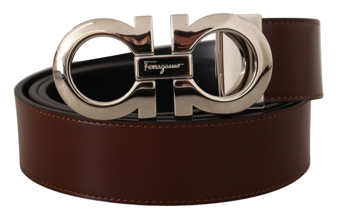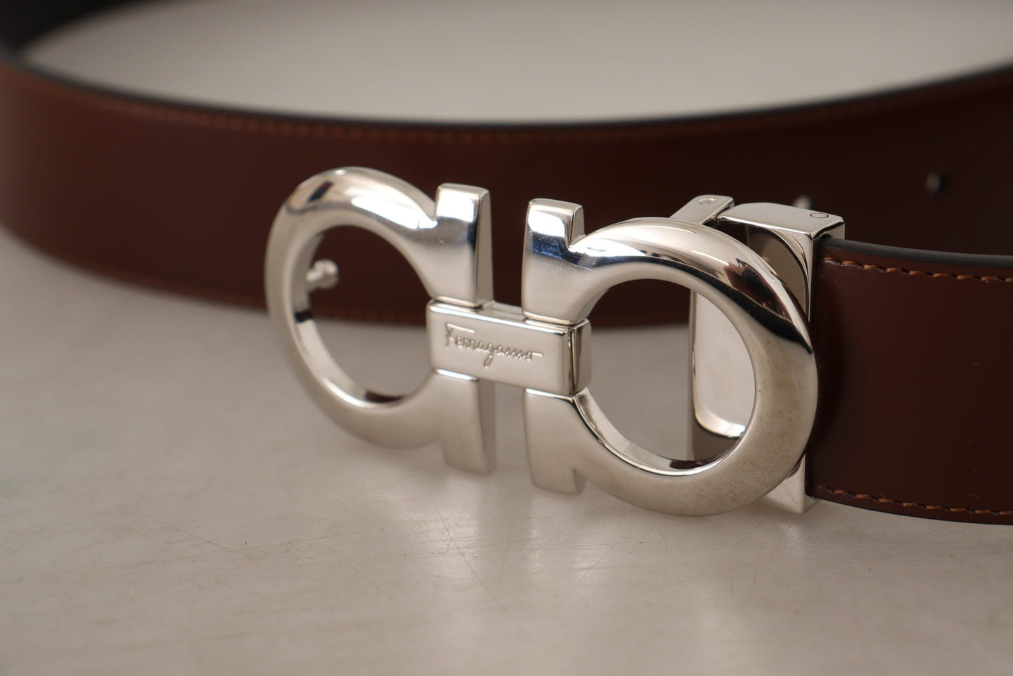 Discover the epitome of refinement with this Salvatore Ferragamo reversible belt. Crafted from sumptuous calf leather with a versatile brown and black design, it’s complemented by a sleek silver buckle. This brand-new accessory comes complete with original tags, dust bag, and box, ensuring its status as a perfect addition to any gentleman’s wardrobe or an ideal gift for someone special.