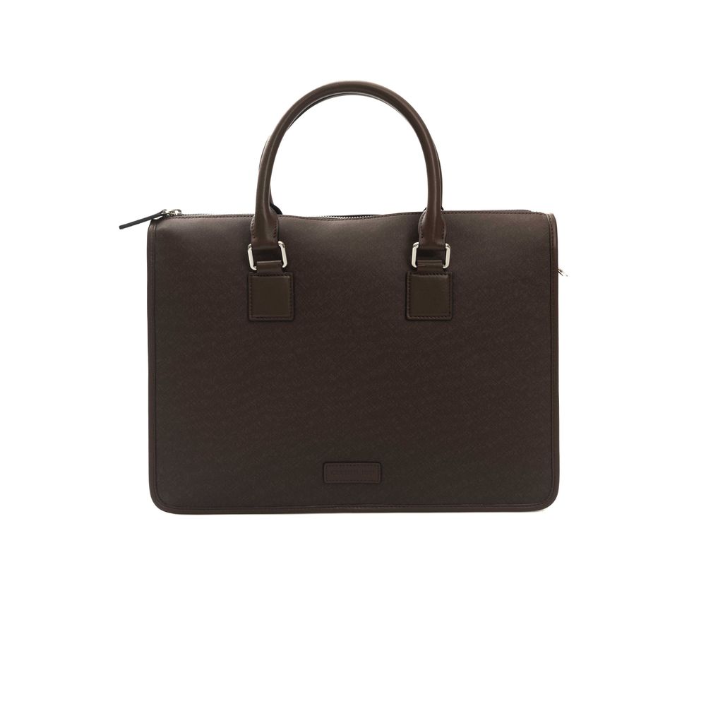 Step into the boardroom with confidence carrying this sophisticated Cerruti 1881 leather briefcase. Designed for the discerning gentleman, it features a sleek brown hue complemented by an elegant shoulder strap for versatile carrying options. The briefcase boasts internal compartments to keep your documents organized and secure with a reliable zip closure. Adorned with the front logo that showcases luxury, this briefcase measures a spacious yet manageable 39*42*8, perfect for everyday business needs.