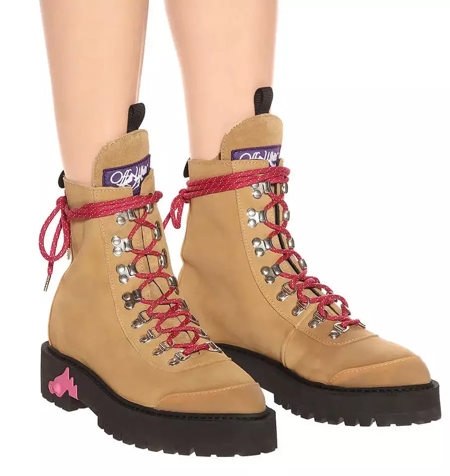 Elegant Suede Trekking Ankle Boots with Pink Accents