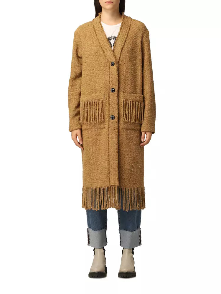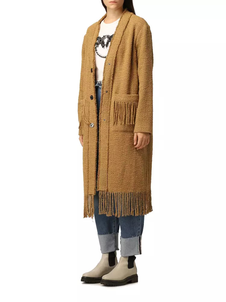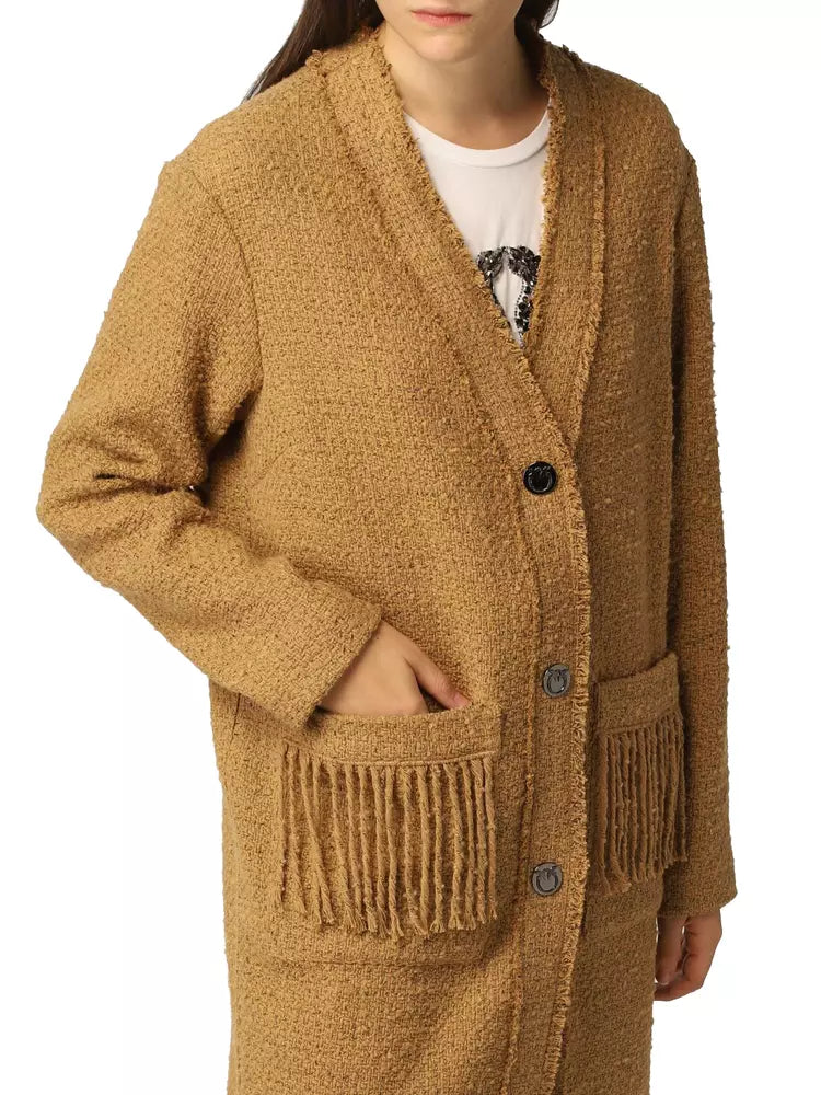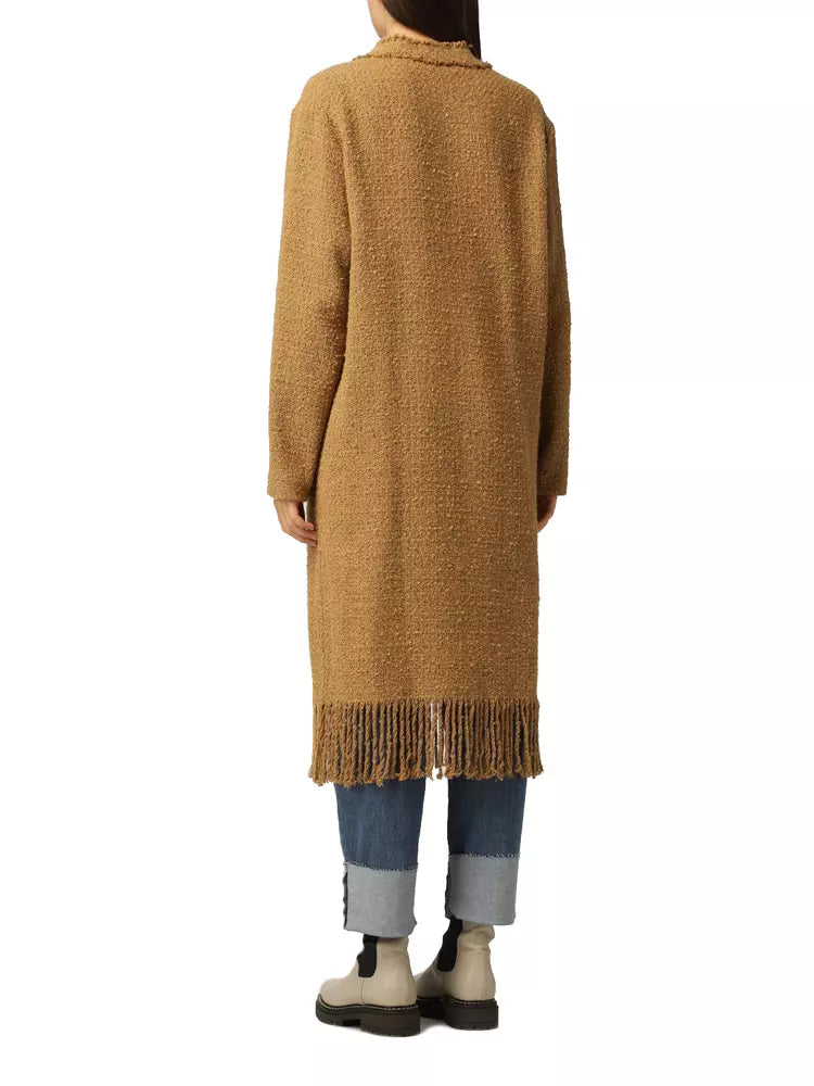 Wrap up in style with this stunning tweed coat, perfect for those who appreciate the blend of classic elegance and modern flair. Boasting a beautiful fringe detail on the bottom, this coat features a sleek button closure and two practical front pockets. Crafted with a blend of high-quality materials and made with care in Italy, it’s a luxurious addition to your outerwear collection.