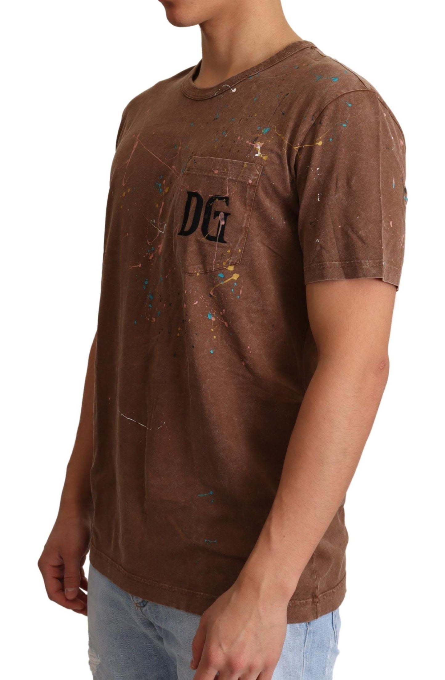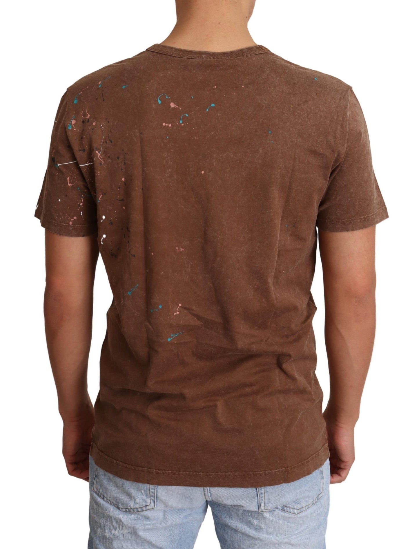Elevate your wardrobe with this gorgeous, brand new crewneck tee by Dolce & Gabbana. Flaunting a chic brown hue with unique paint accents, this 100% cotton T-shirt is designed for a comfortable regular fit, complete with the sophisticated touch of logo details. Crafted in Italy, it’s the epitome of luxury casual wear.