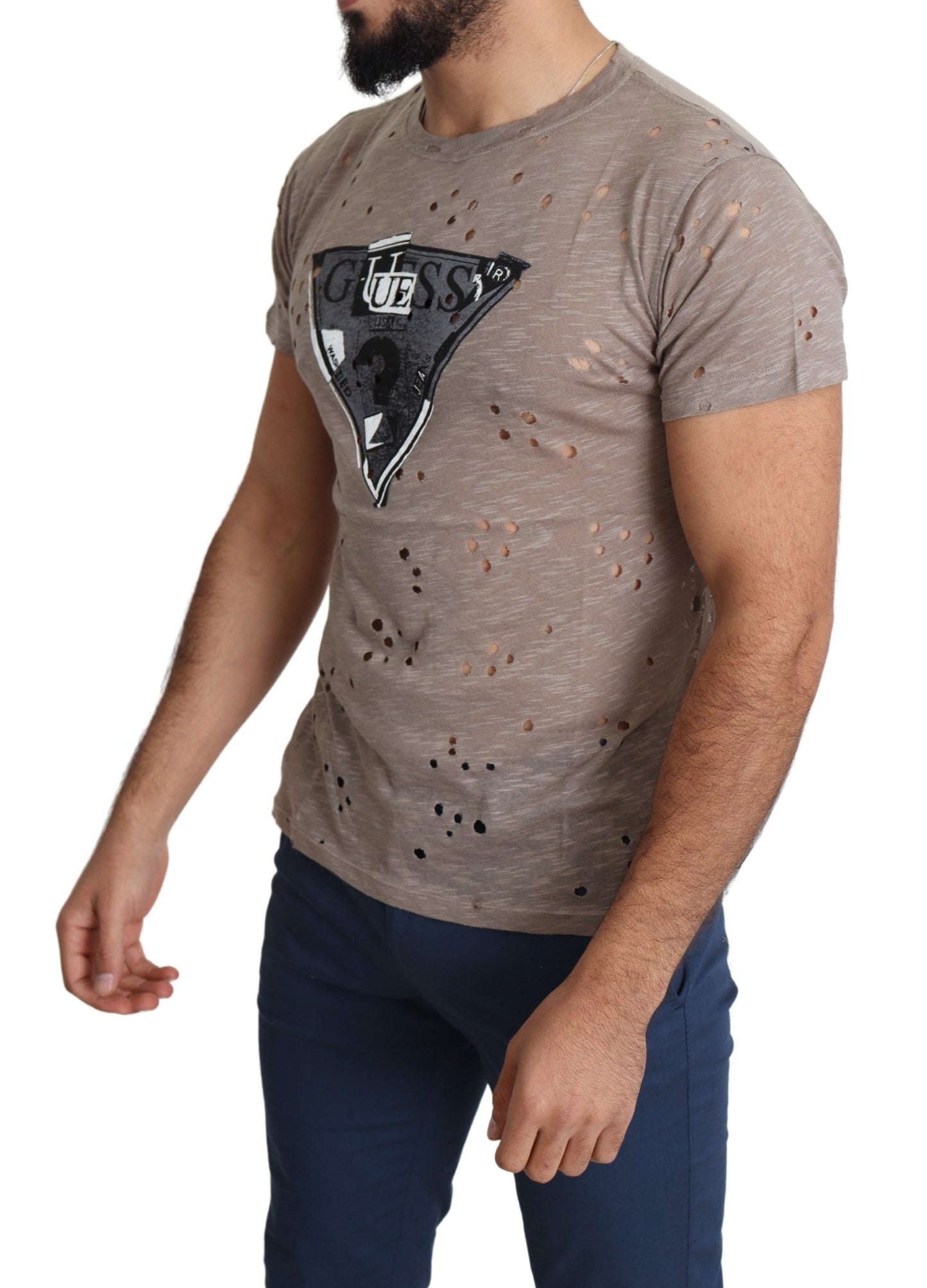 Refine your casual wardrobe with the exquisite style of this Guess Brown Cotton Stretch T-shirt. Crafted with a blend of 95% cotton and 5% elastane, this round neck, short-sleeved tee offers a comfortable regular fit that’s perfect for everyday elegance. Featuring a subtle logo detail, this piece is a testament to enduring style and quality made in Italy. Take a step towards effortless sophistication with this versatile addition to your collection.