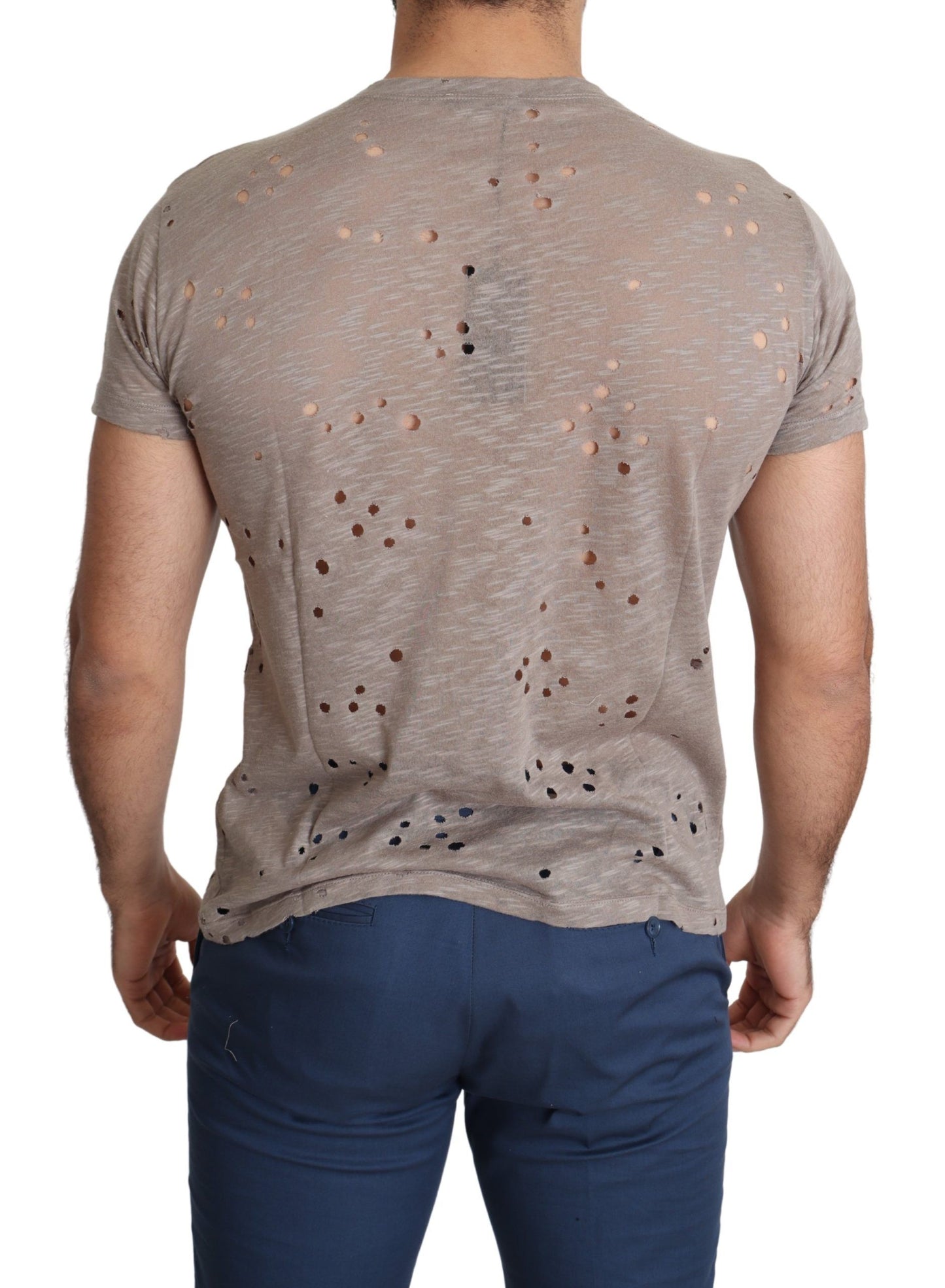 Chic Brown Cotton Stretch Round Neck Tee