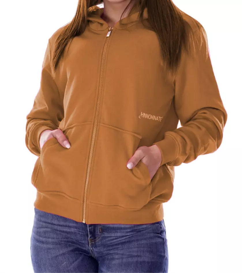 Chic Brown Cotton Hooded Sweatshirt with Zip Closure