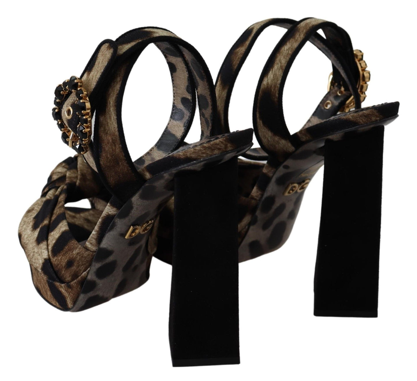 Elevate your style quotient with these exquisite Leopard Print Ankle Strap Sandals from Dolce & Gabbana. Ideal for fashion-forward individuals, these sandals are a perfect blend of comfort and luxury, boasting a sensual open-toe design and a glamorous brown leopard print embellished with black crystals for that extra sparkle.