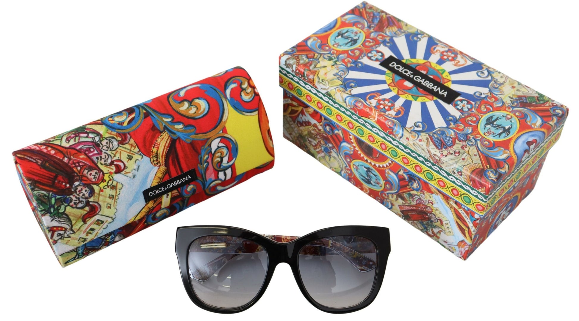 Step into the spotlight with these Dolce & Gabbana Sicilian Carretto Cat-Eye Sunglasses. A perfect blend of elegance and modern fashion, these sunglasses feature iconic cat-eye edges and black gradient lenses that will keep you in vogue. Expertly crafted from high-quality acetate, they offer not just style but 100% UV protection, ensuring your eyes are shielded in the chicest way possible. Adorned with the brand’s distinguishing logo on the temples for an unmistakable touch of luxury, these Italian-made sunglasses are an accessory you’ll cherish.