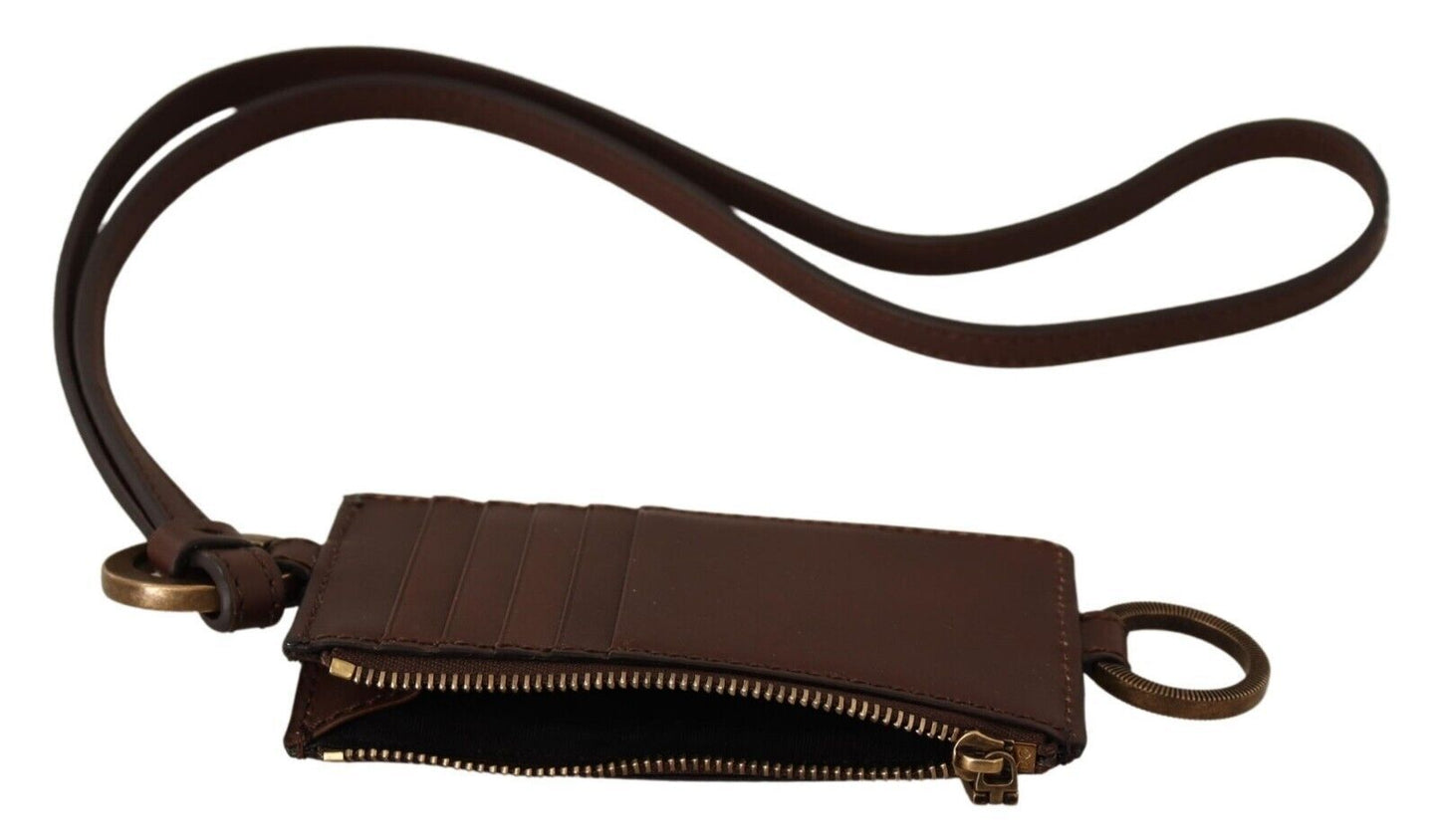 Step up your accessory game with this sophisticated, 100% Authentic Dolce & Gabbana Toffee leather cardholder. The perfect blend of functionality and style, it features an embossed logo front and center, a convenient lanyard strap for easy carrying, a secure side zip fastening, and multiple card slots to keep your essentials organized.
