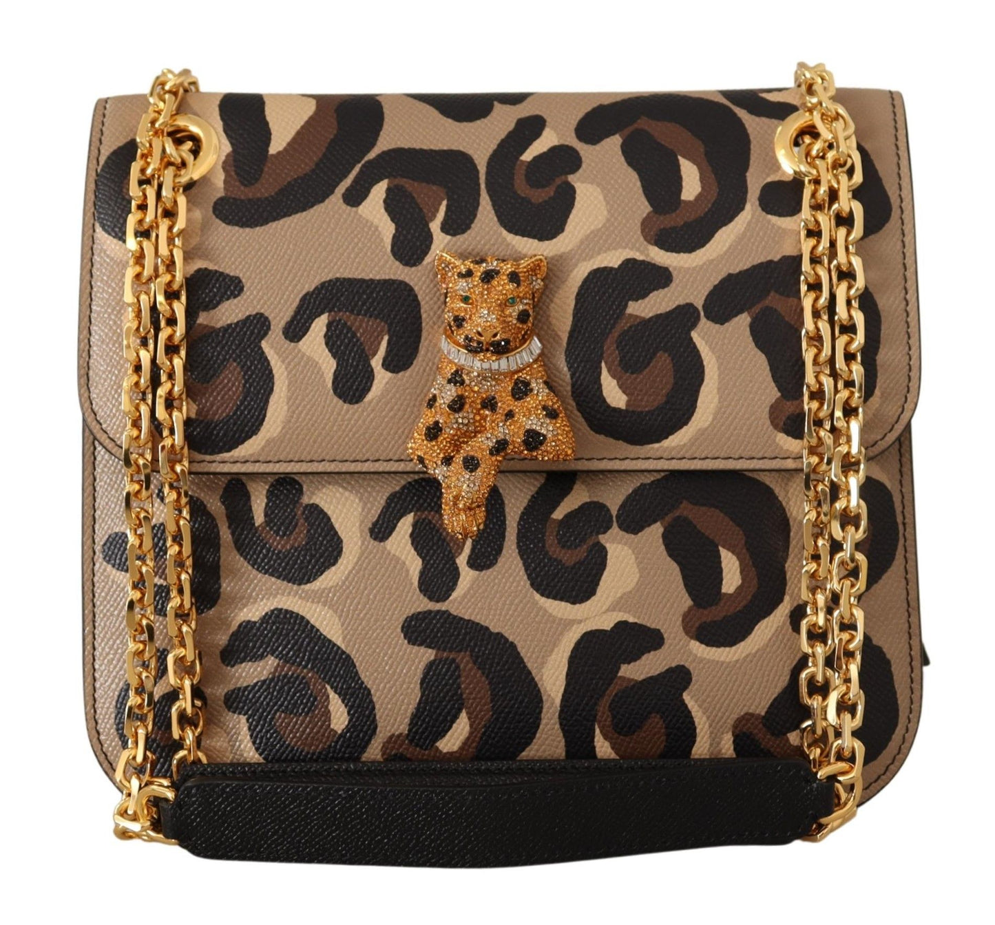 Indulge in the epitome of opulence with this stunning Dolce & Gabbana evening purse. A perfect accessory for those who appreciate luxury and style, this shoulder bag captivates with its brown and black DG leopard print, beautifully complemented by lavish gold metal detailing. Designed for elegance and functionality, it features a comfortable shoulder chain with a leather strap and a secure push-button flap closure. The black interior lining ensures all your essentials are cradled in luxury, while the tasteful logo engraved hardware is a testament to the bag’s authenticity and high-end craftsmanship. This Italian-made masterpiece is compact yet spacious enough to accompany you on your most memorable evenings.