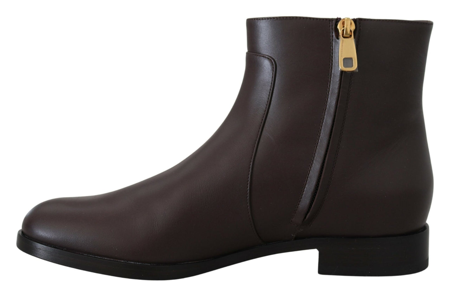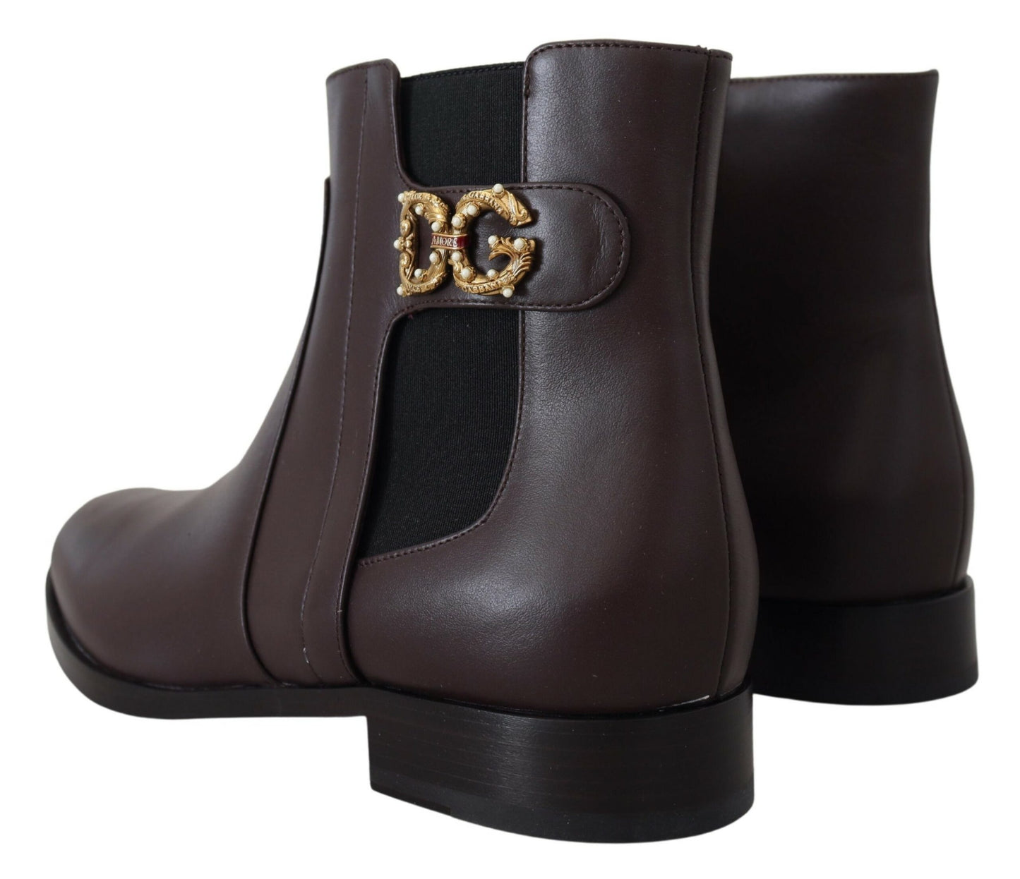 Elegant Brown Ankle Boots with Gold Pearl Detail