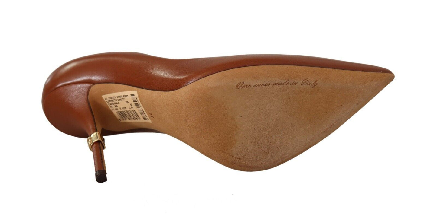 Step into luxury with these gorgeous, brand new leather heels pumps from the esteemed Dolce & Gabbana. With their rich brown color, they exude classic elegance and are crafted for utmost comfort and high quality. Perfect for adding a touch of sophistication to any outfit, these pumps are a testament to Italian craftsmanship and style, featuring delicate logo details and a leather sole for enduring wear.