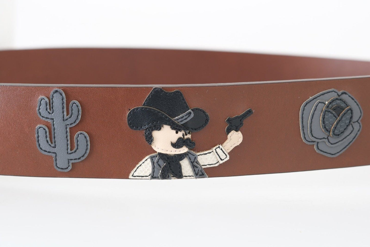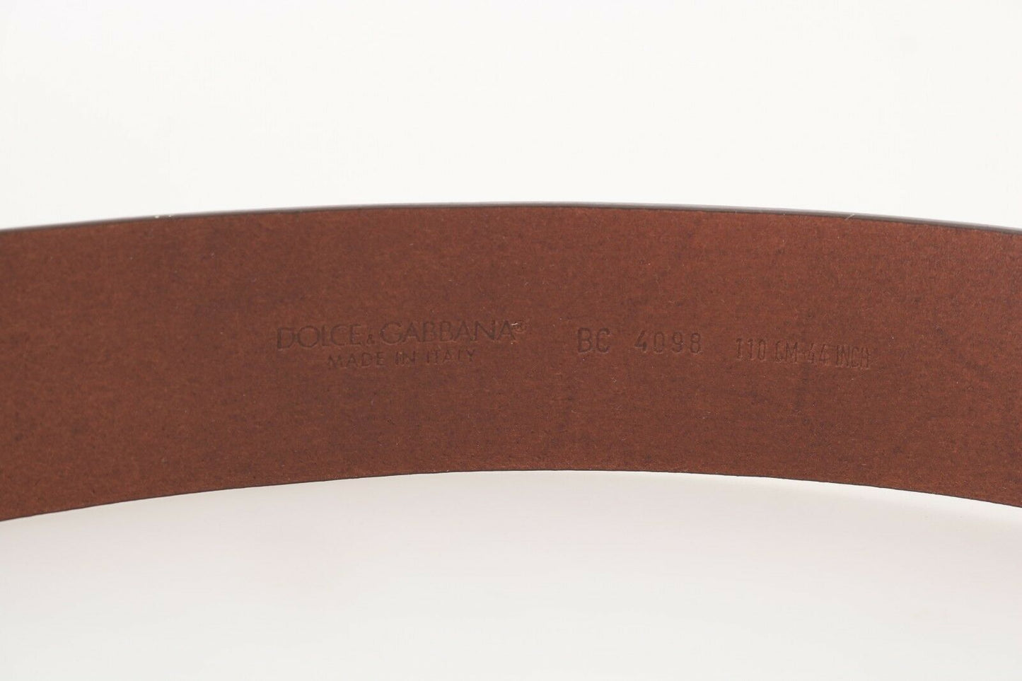Step into the realm of high fashion with this exquisite Dolce & Gabbana Men’s Belt, a blend of luxury and rustic charm. A masterpiece from the Sicilian Western collection, this authentic belt captivates with its detailed cowboy, cactus, and flower leather appliques, set against a rich brown backdrop. The lustrous gold metal buckle adds a flash of opulence, making it a striking accessory for any attire. Crafted from high-quality leather, this Italian-made belt is a statement piece that embodies both sophistication and the wild spirit of the West.