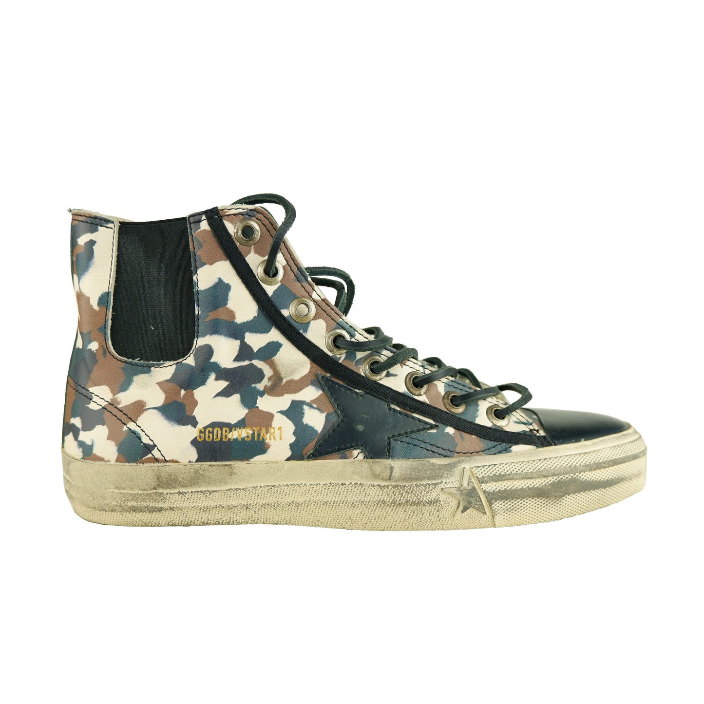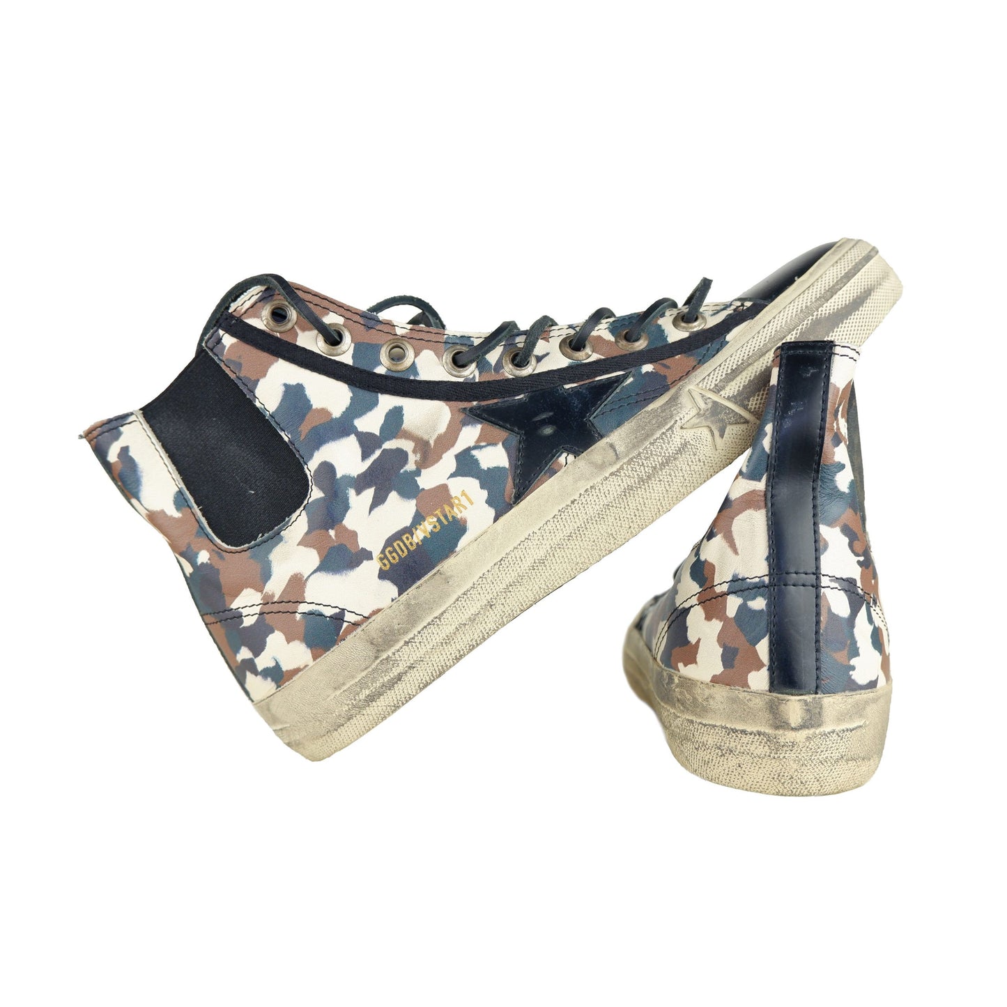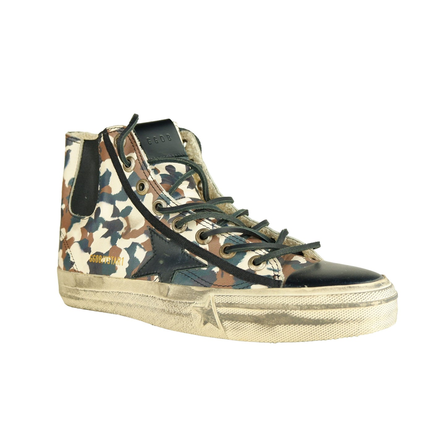 Step into comfort and style with these women’s sneakers, featuring a trendy military camouflage print paired with sleek black leather accents. The distinctive star logo complements the design, creating an edgy yet elegant aesthetic. Crafted from premium calfskin with a durable rubber sole, these sneakers promise both luxury and longevity. Embrace Italian craftsmanship with every stride you take.