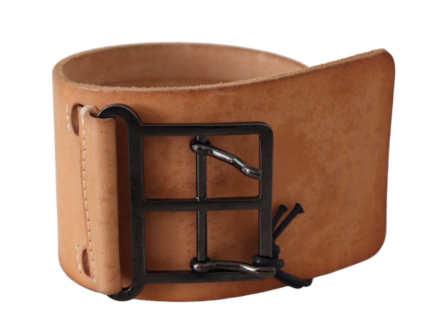 Enhance your ensemble with the exquisite craftsmanship of a Scervino Street belt. This stunning accessory comes brand new with tags, featuring a sophisticated light brown color that complements any outfit. The belt is meticulously crafted from premium leather and boasts a sleek black-tone hardware with a square buckle fastening. The belt’s solid pattern and subtle logo detailing add a touch of elegance, making it an essential addition to your wardrobe. Designed and made in Italy, this waist belt is a testament to timeless style and quality.