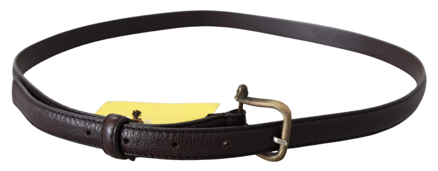 Elegant Dark Brown Leather Belt with Bronze-Tone Hardware