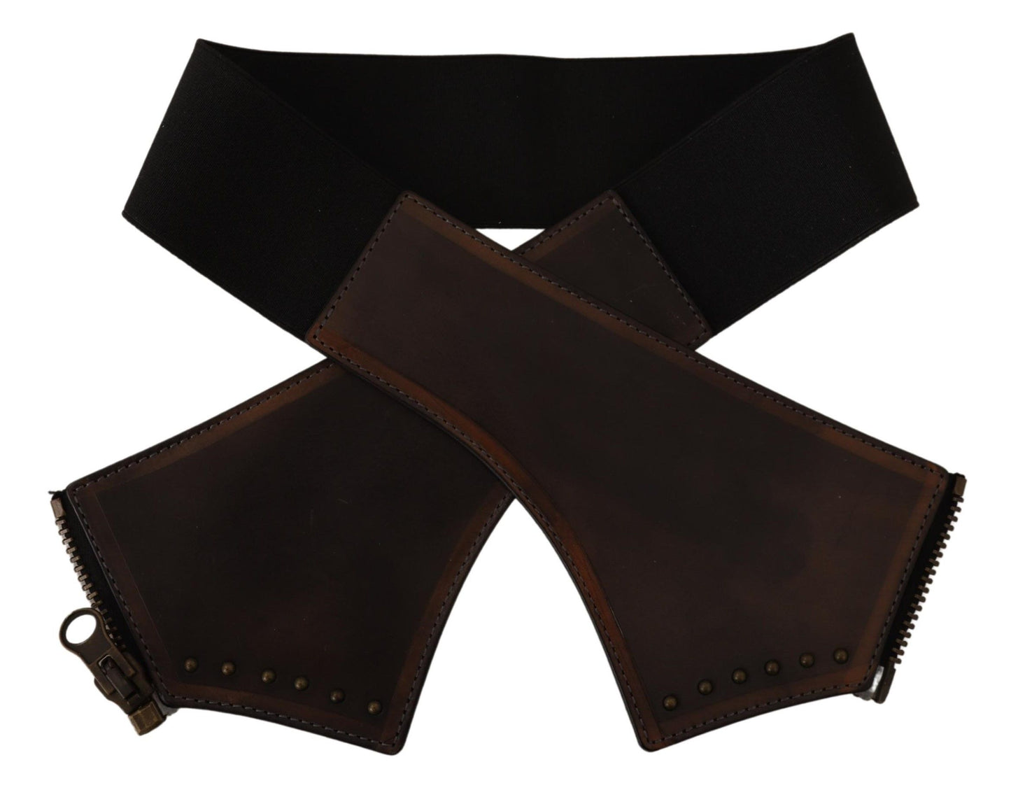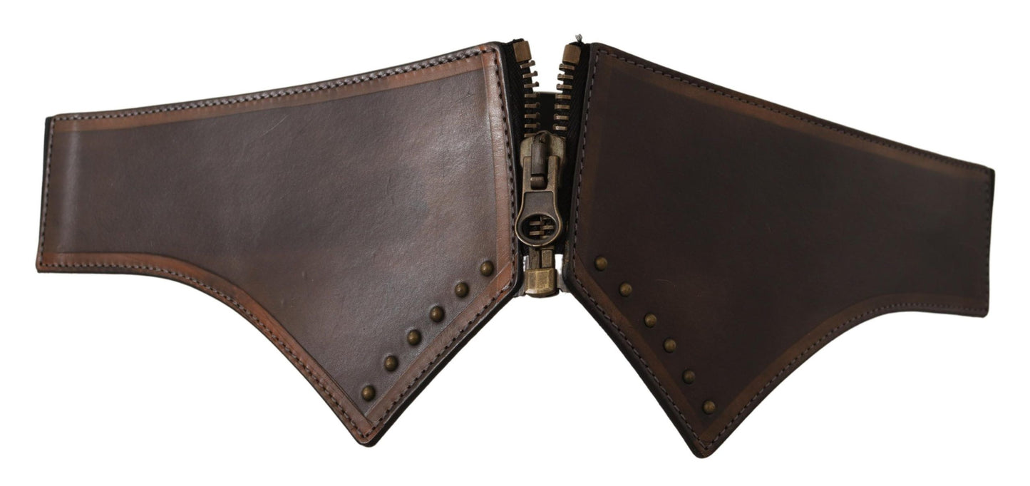 Elegant Brown Leather Waist Belt with Zipper Closure