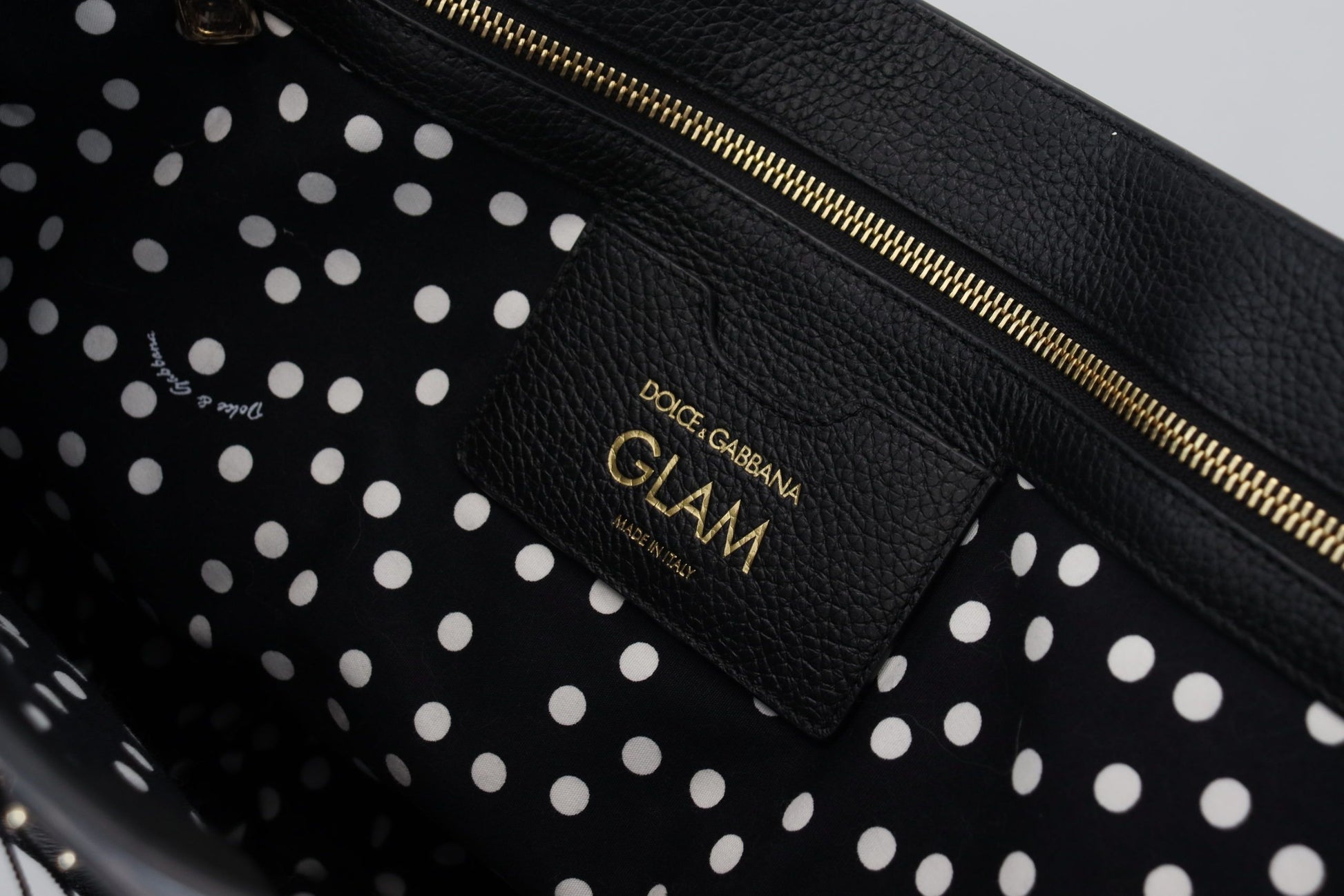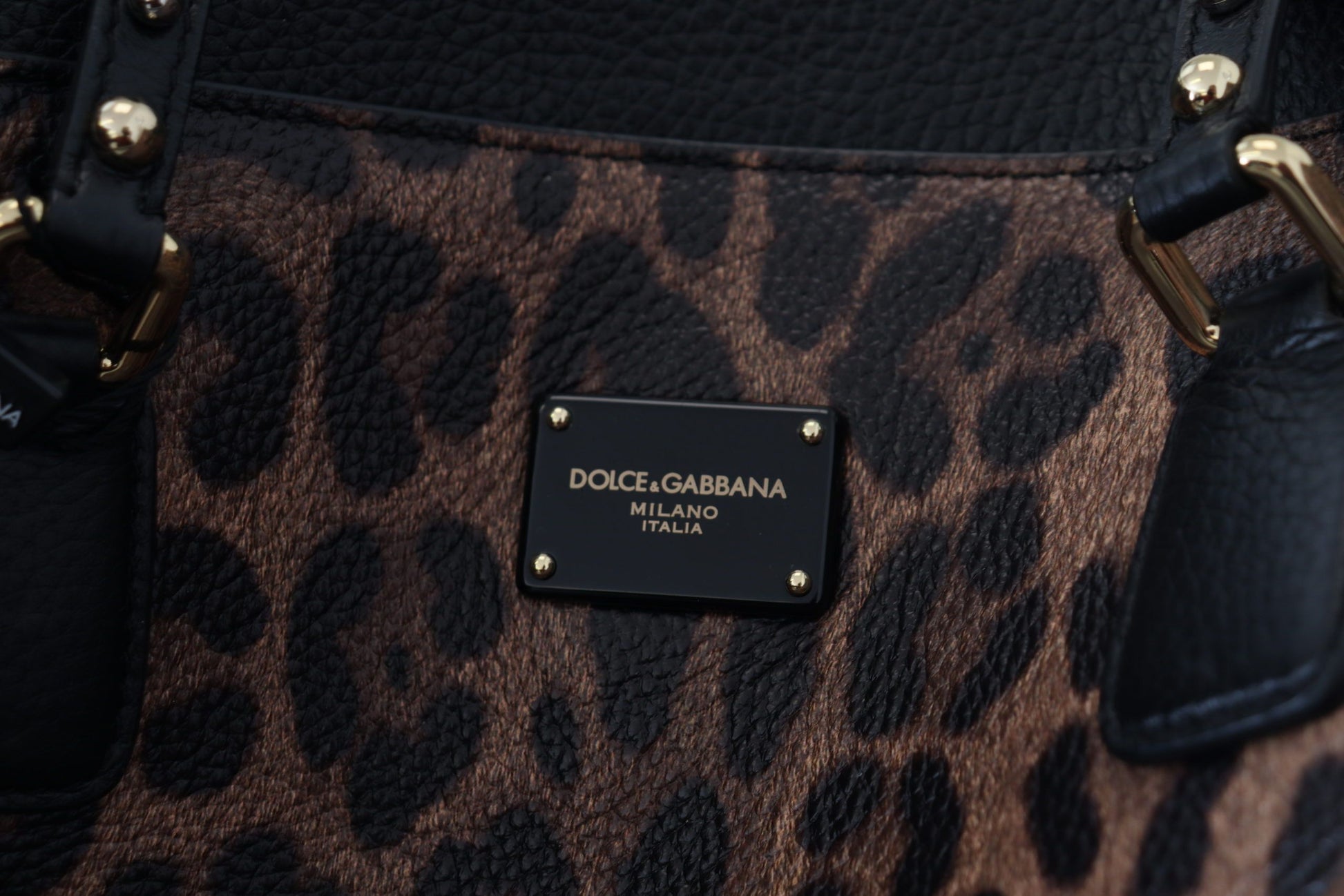 Step out in sophisticated style with the glamorous Dolce & Gabbana shopping tote. Featuring a chic leopard print on luxurious leather, this tote adds an exotic edge to your ensemble while providing ample room for your essentials. The black and white polka dot lining offers a playful contrast, perfect for the fashionista who loves to mix prints. Crafted in Italy, the bag’s fine construction and logo-engraved hardware signify a commitment to quality. An inner pocket with a zipper ensures your valuables are secure as you go about your day.