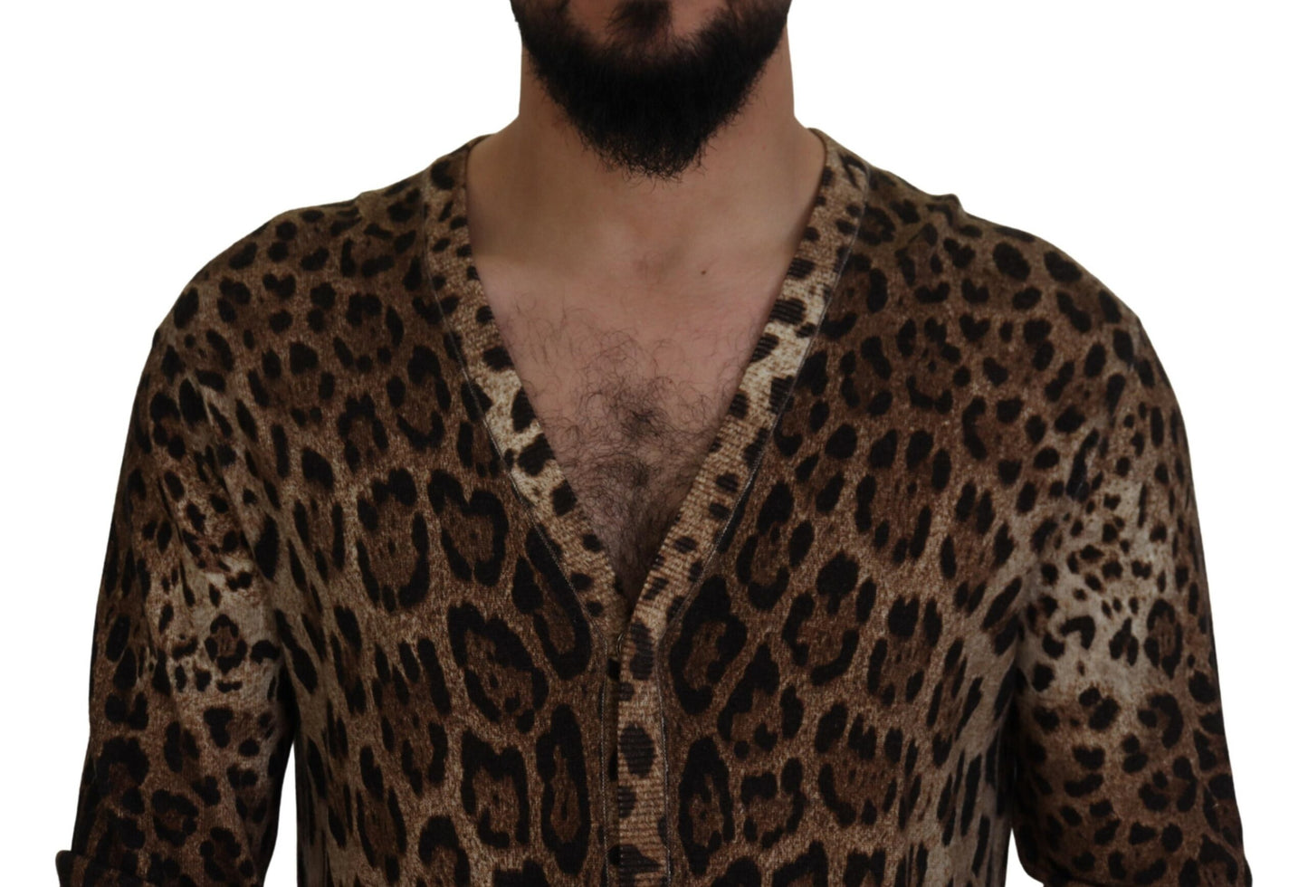 Indulge in the epitome of luxury with this stunning cardigan sweater by Dolce & Gabbana. Crafted from the finest 100% virgin wool, this exquisite garment is guaranteed to add a touch of Italian elegance to your wardrobe. Featuring a bold leopard print in a rich brown hue, this cardigan impeccably fuses high fashion with comfort. Perfect for adding a statement layer to any outfit, make this piece a part of your collection today and experience unrivaled style and sophistication.