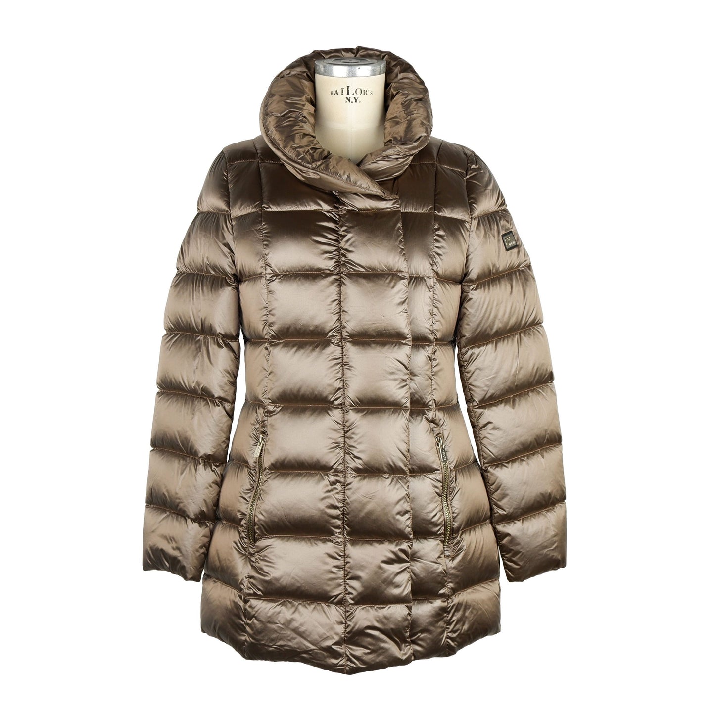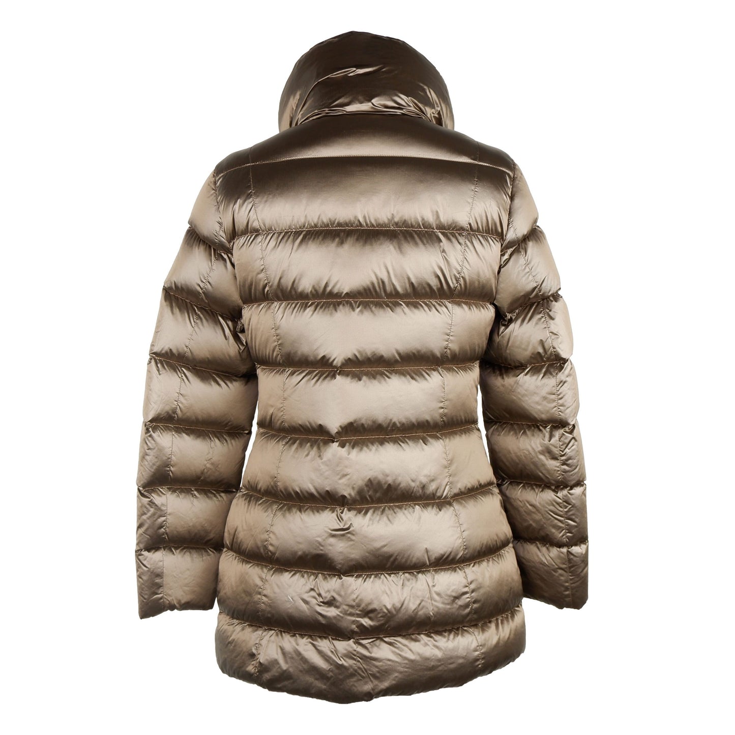 Elevate your winter wardrobe with this sophisticated brown down jacket, designed for the modern woman. Crafted from high-quality polyamide and filled with genuine down, this jacket offers both warmth and style. Featuring a sleek design with a secure zip and button closure, two convenient side pockets, and a protective high collar, it’s perfect for staying cozy in cooler weather.