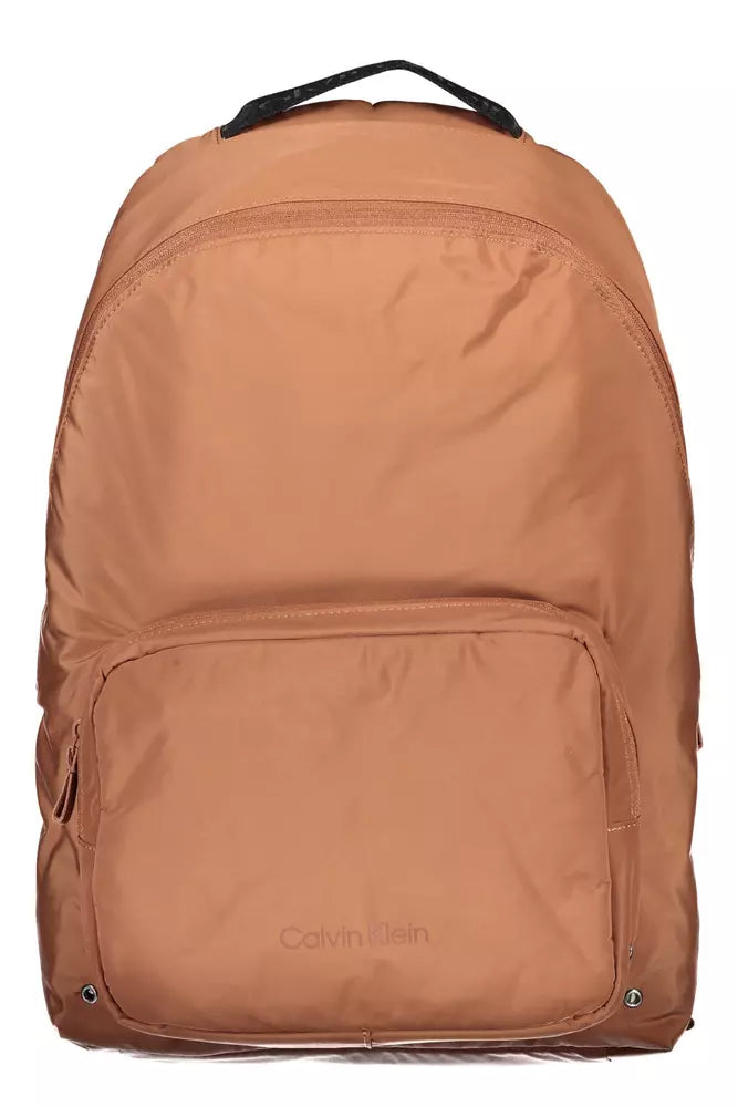 Discover sustainable style with the Calvin Klein backpack, expertly crafted for the environmentally conscious individual. This sleek brown backpack combines functionality with eco-friendly fashion, featuring a single handle and adjustable straps for comfort, alongside a convenient external pocket. The backpack also sports a dedicated internal laptop pocket, making it a perfect companion for both work and leisure. Embrace the elements without worry, as the water-repellent finish ensures your belongings stay dry. The signature logo adds an unmistakable touch of class to the backpack, which is fashioned from 100% recycled polyester, reflecting your commitment to a greener future.