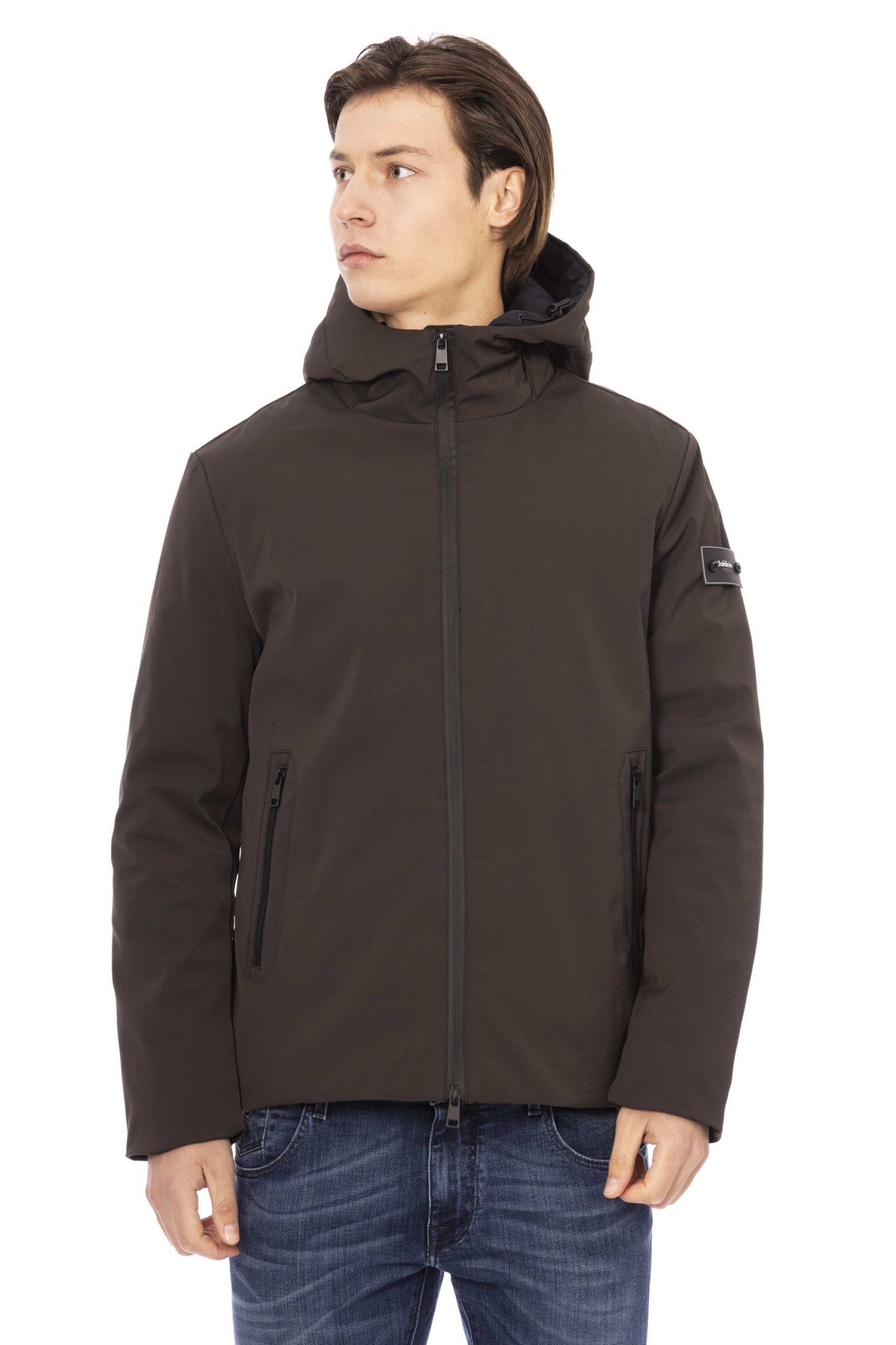 Exude sophistication with this impeccably tailored brown jacket from Baldinini Trend, designed to elevate your style effortlessly. Featuring external welt pockets for a sleek look, an adjustable hood for practicality, and a distinctive Baldinini metal monogram that adds a touch of luxury. The front closure is secured with a zip, complemented by a customized zip puller for that extra attention to detail.