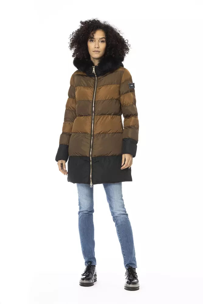 Stay stylishly insulated in the ‘Baldinini Trend’ Long Down Jacket, perfect for those looking to make a chic statement in the cooler months. Featuring a vibrant multicolor fantasy print, this jacket offers practicality without sacrificing style. It boasts external welt pockets for your essentials, and a cozy hood adorned with adjustable synthetic fur to keep you warm. The distinguished Baldinini monogram in metal adds a touch of class, while the front closure with a zip and customized zip puller ensures a secure and fashionable fit.