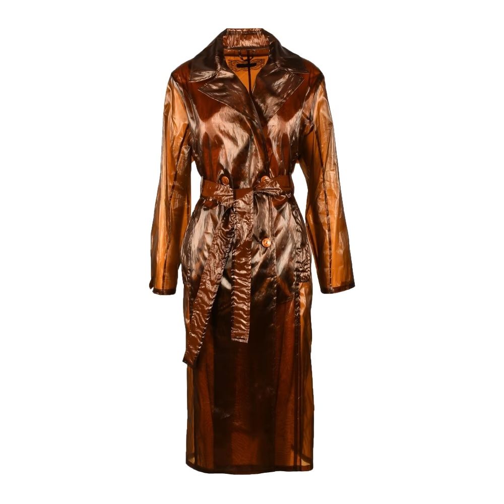 Step out in style with this Patrizia Pepe trench coat, crafted in a stunning copper-colored lightweight technical fabric that’s perfect for transitional weather. With a sophisticated belted waist and secure button closure, this coat combines Italian elegance with practical design. Proudly made in Italy, it stands as a testament to timeless style and quality craftsmanship.