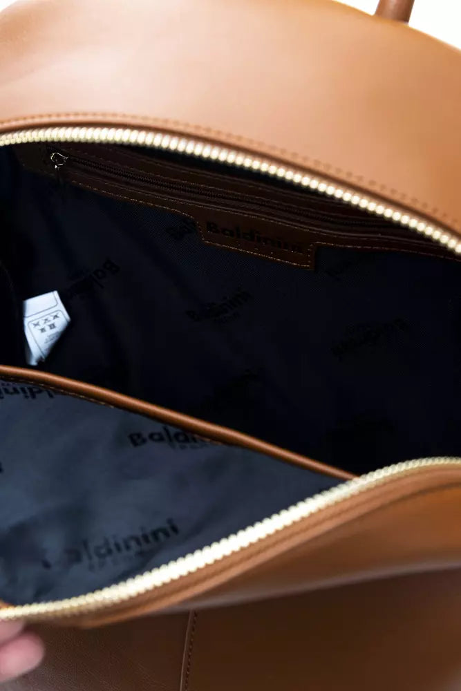 Step out in style with this sophisticated backpack by Baldinini Trend, perfect for the modern woman on-the-go. The sleek brown design is enhanced with golden details for a touch of elegance, and the iconic front logo showcases your taste for luxury fashion. Equipped with zip closure, internal compartments, and a handy front pocket, this backpack combines functionality and fashion flawlessly. The adjustable shoulder straps ensure a comfortable fit for all-day wear.