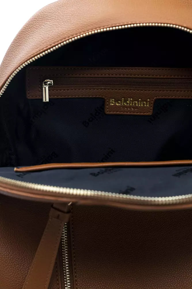 Experience functional elegance with this Baldinini Trend backpack, featuring a sleek zip closure and a well-organized interior for all your essentials. The front pocket offers additional space, while adjustable shoulder straps ensure comfort on the go. Elegantly accentuated with golden details and the brand’s signature logo, this backpack is not just a carryall but a fashion statement. Its generous dimensions, 31*35*14 cm, make it an ideal companion for your busy days.