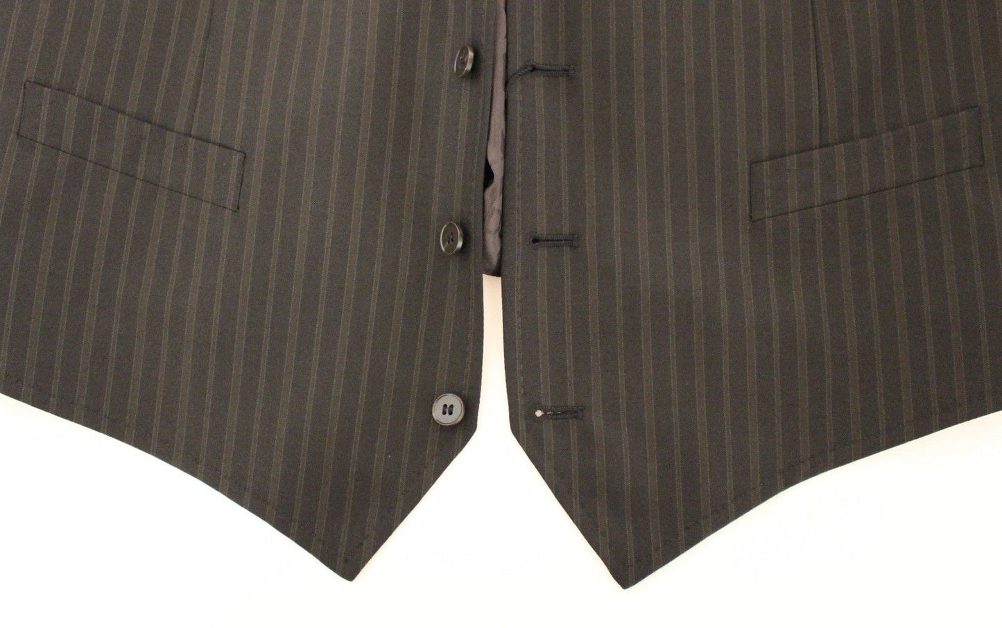 Refine your wardrobe with this stunning striped dress vest from Dolce & Gabbana. This luxurious vest is crafted from a premium blend of wool and elastane, ensuring both comfort and an impeccable fit. The classic brown striped pattern exudes sophistication, making it the perfect addition to your formal attire. Designed in Italy, this vest features a timeless single-breasted design, an adjustable back waist strap for a customized fit, and a sleek full front button closure. It’s adorned with subtle logo details that speak to the brand’s renowned craftsmanship.