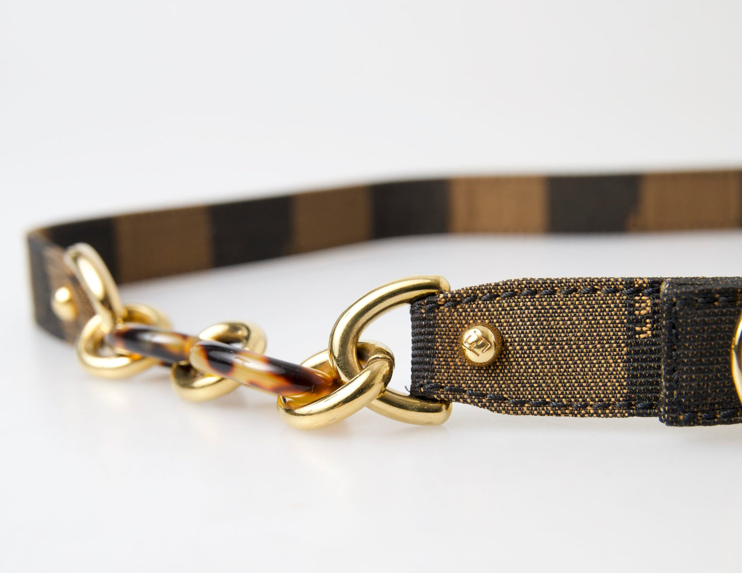 Discover the epitome of Italian elegance with this gorgeous, brand new belt that adds a touch of sophistication to any outfit. Crafted from high-quality canvas, it features a striking stripe pattern and is adorned with a chic gold tone metal buckle. The exquisite craftsmanship of Fendi is evident in every detail, making this belt a must-have accessory for those who appreciate luxury and style.