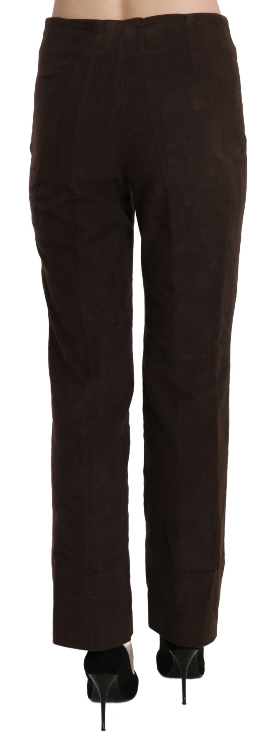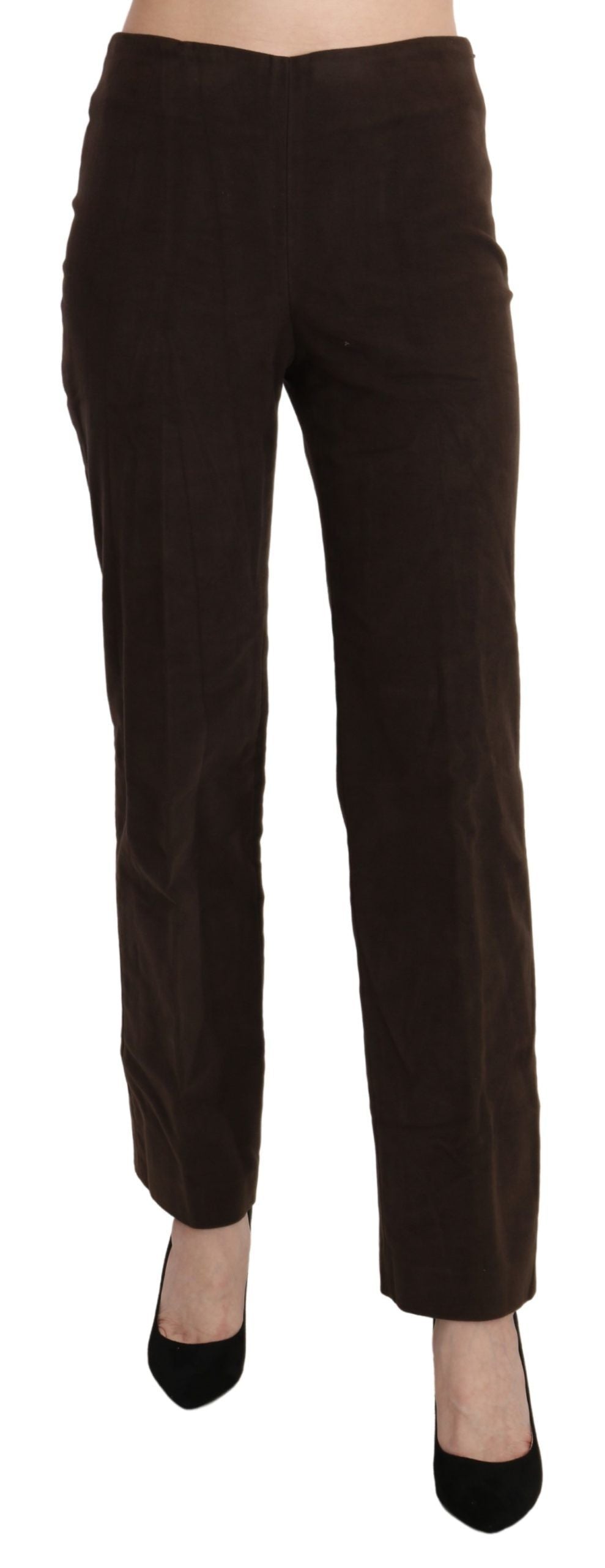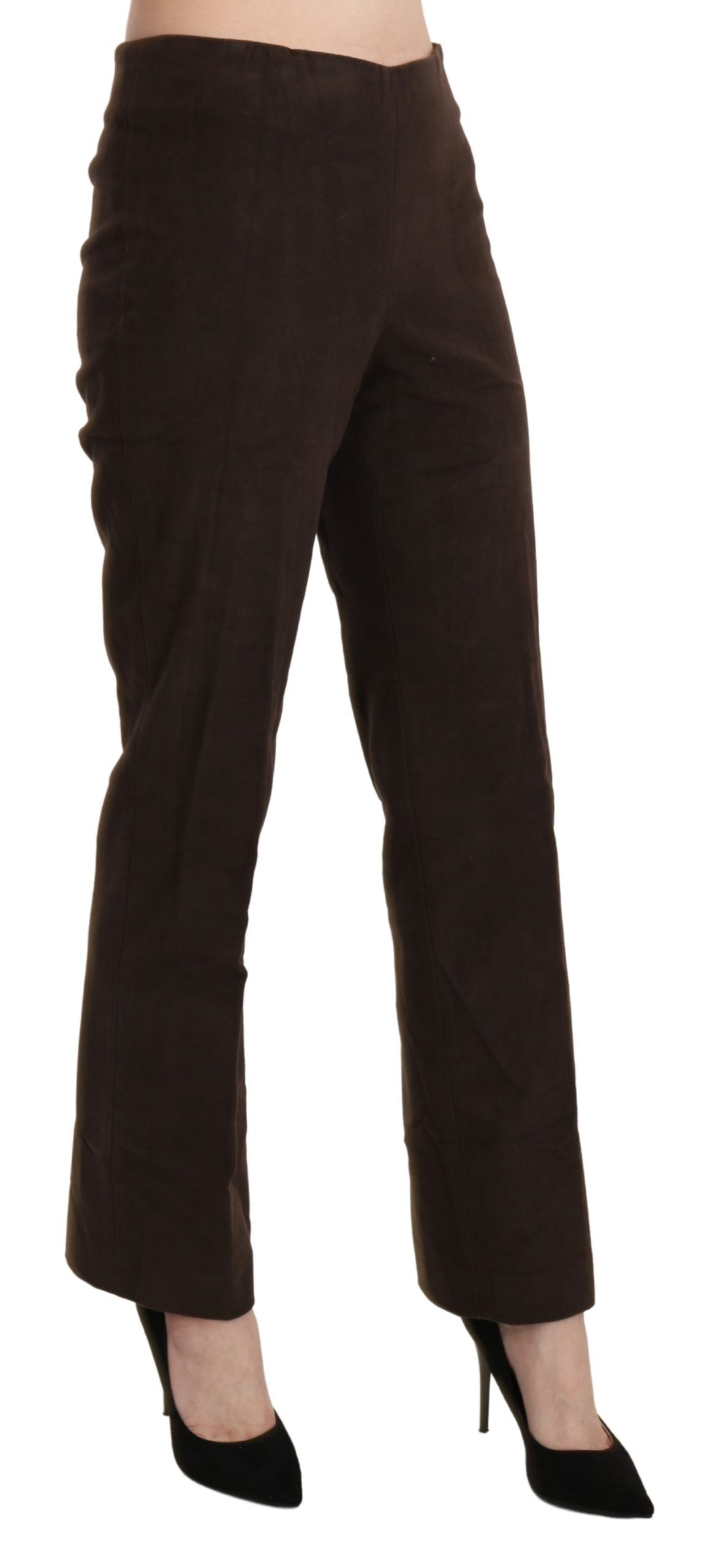 Step into luxury with these stunning BENCIVENGA high waist straight pants. Perfectly tailored for an impeccable fit, they’re a timeless addition to your wardrobe. Made with sumptuous suede in a rich brown hue, these pants exude elegance and style with every wear. Crafted in Italy, they feature a sleek zipper closure and are adorned with subtle logo details, showcasing the brand’s eye for sophistication.