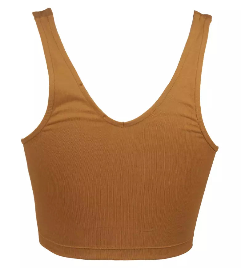 V-Neck Stretch Cotton Top in Brown