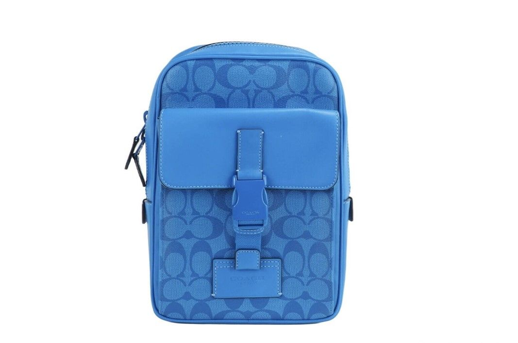 (C9838) Bright Blue Signature Coated Canvas Track Pack Slingpack Backpack