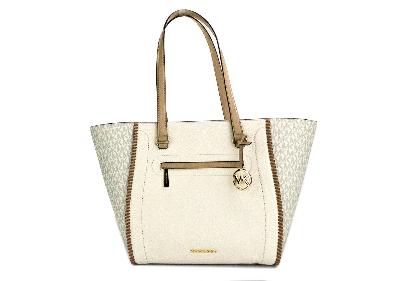 Style: Michael Kors Carine Large Light Cream Leather PVC Front Zip Shoulder Tote Bag