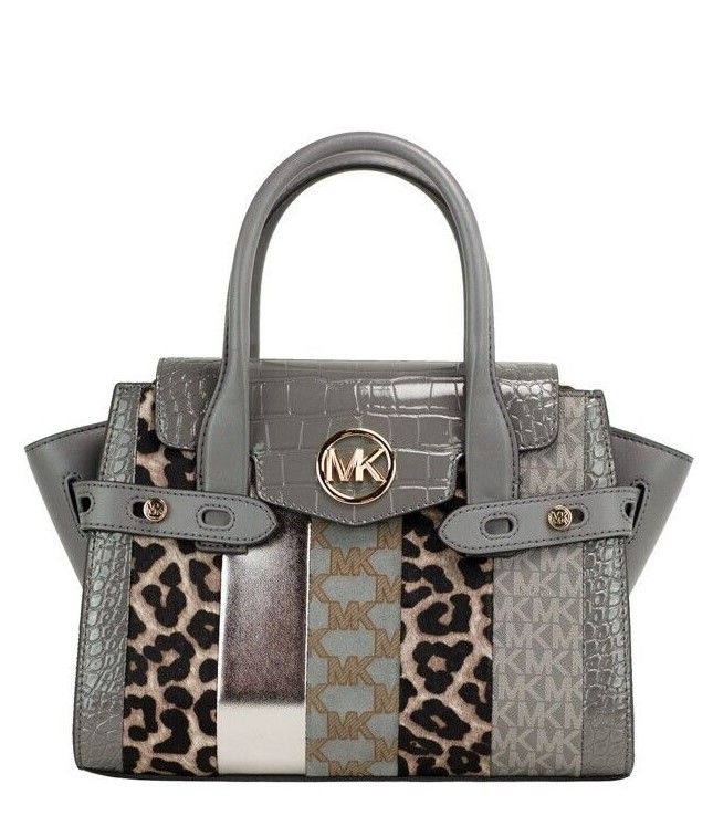 Carmen Medium Exotic leopard Heather Grey Satchel Handbag Purse
