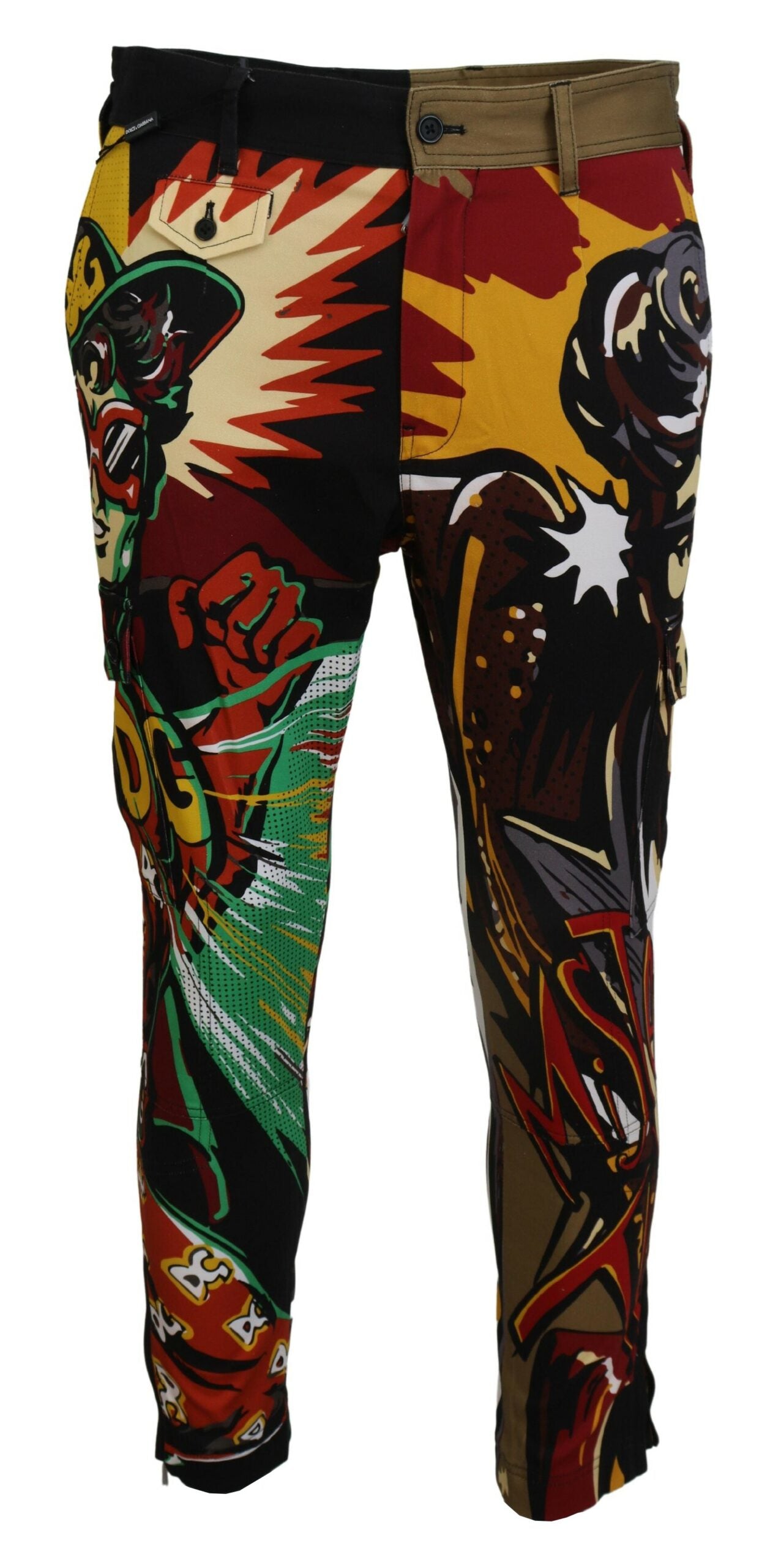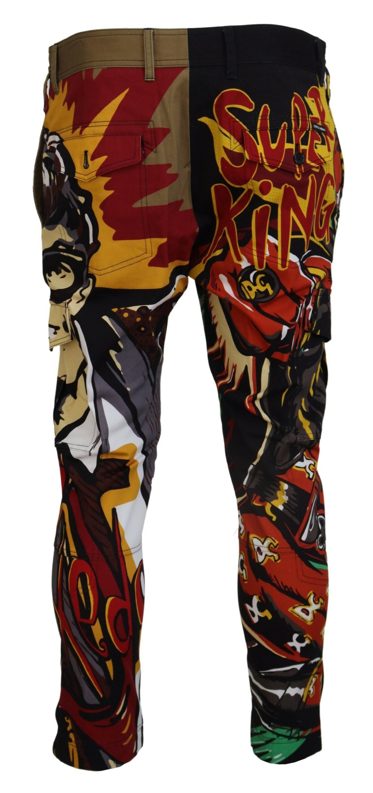 Step into the world of high fashion with these stunning casual cargo trousers by Dolce & Gabbana. These 100% authentic pants are your ticket to a standout look with their eye-catching multicolor cartoon print. Perfect for those who appreciate a blend of luxury and playful style, these cargos offer a regular fit with a contemporary edge thanks to the sleek end leg zipper opening.