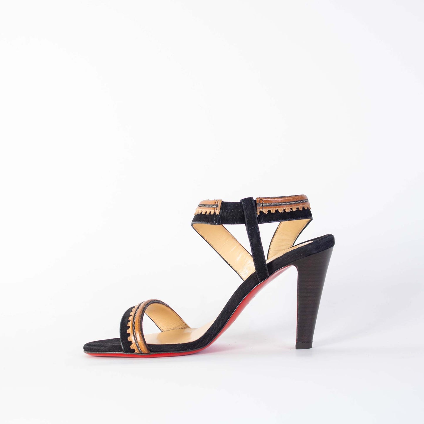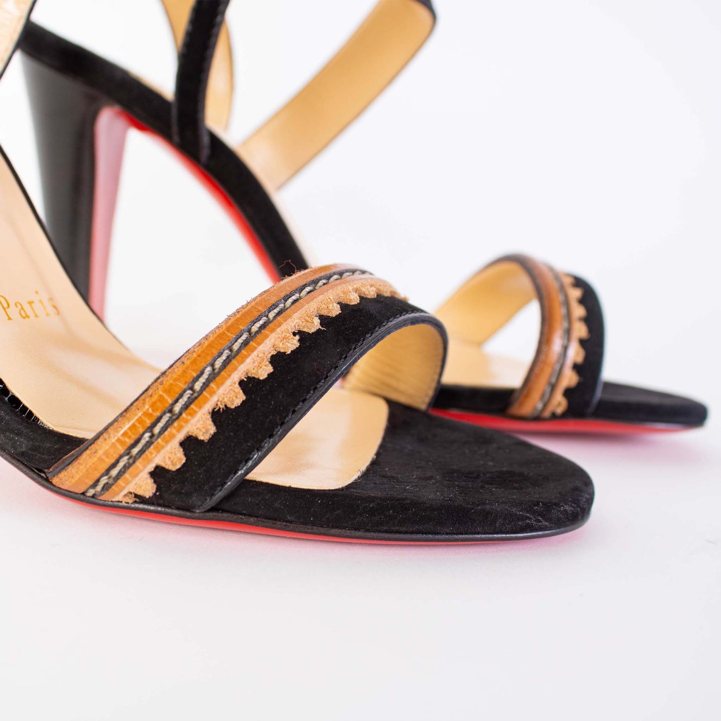Step out in style with these stunning heels that blend luxury and sophistication. The perfect addition to your wardrobe, these Christian Louboutin sandals boast not only the iconic elegance associated with the brand but also a modern twist with their suede and leather details. Crafted in Italy, these sandals are tailored to fit beautifully and provide unparalleled comfort.
