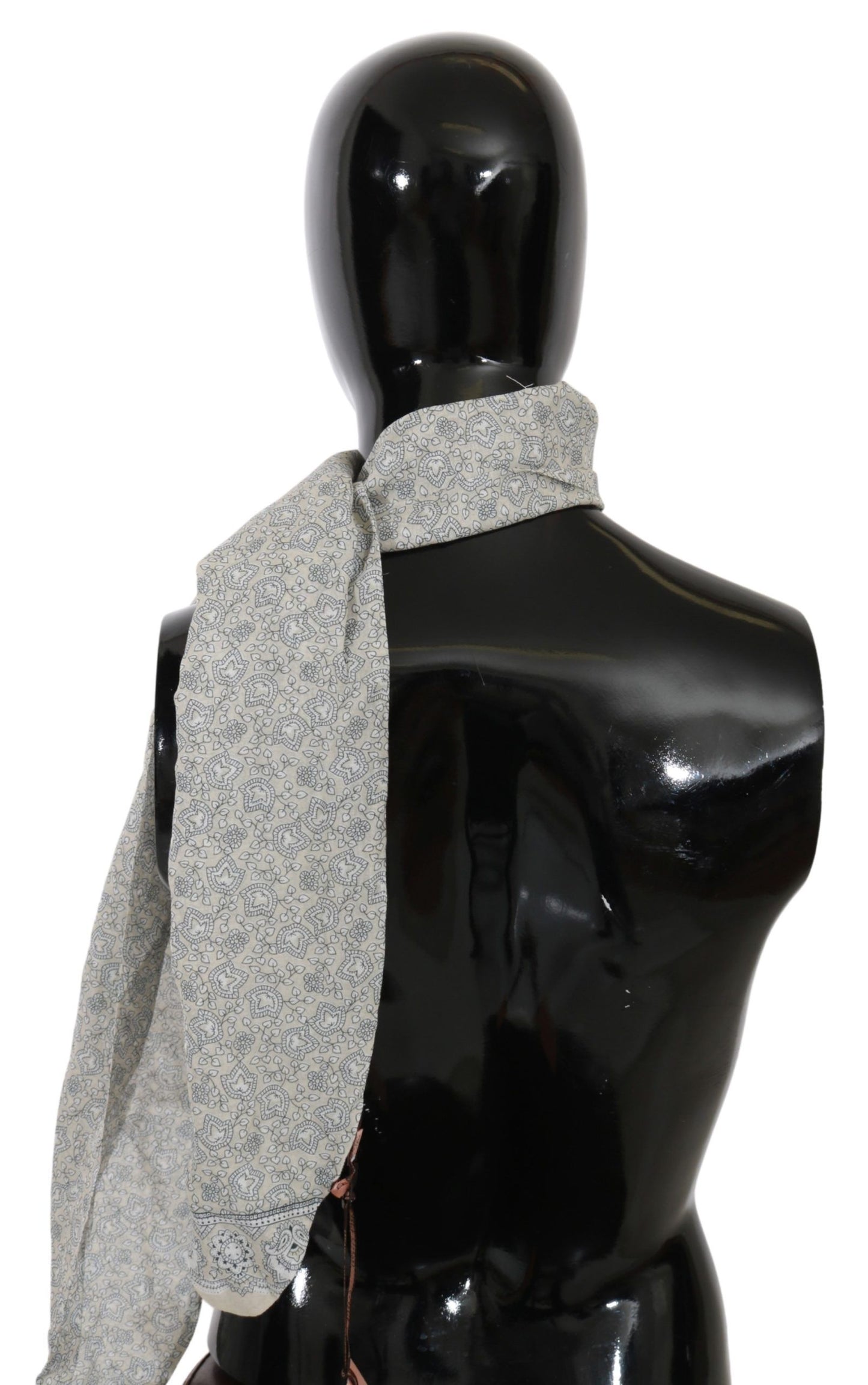 Chic Cotton Scarf in Beige & Blue Fantasy Print