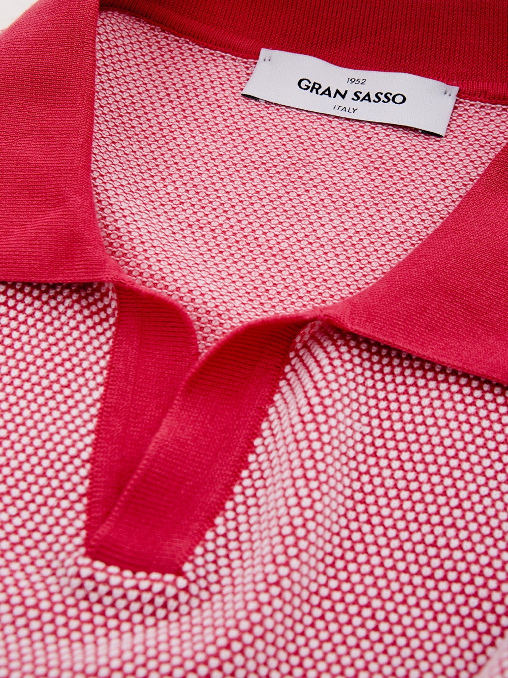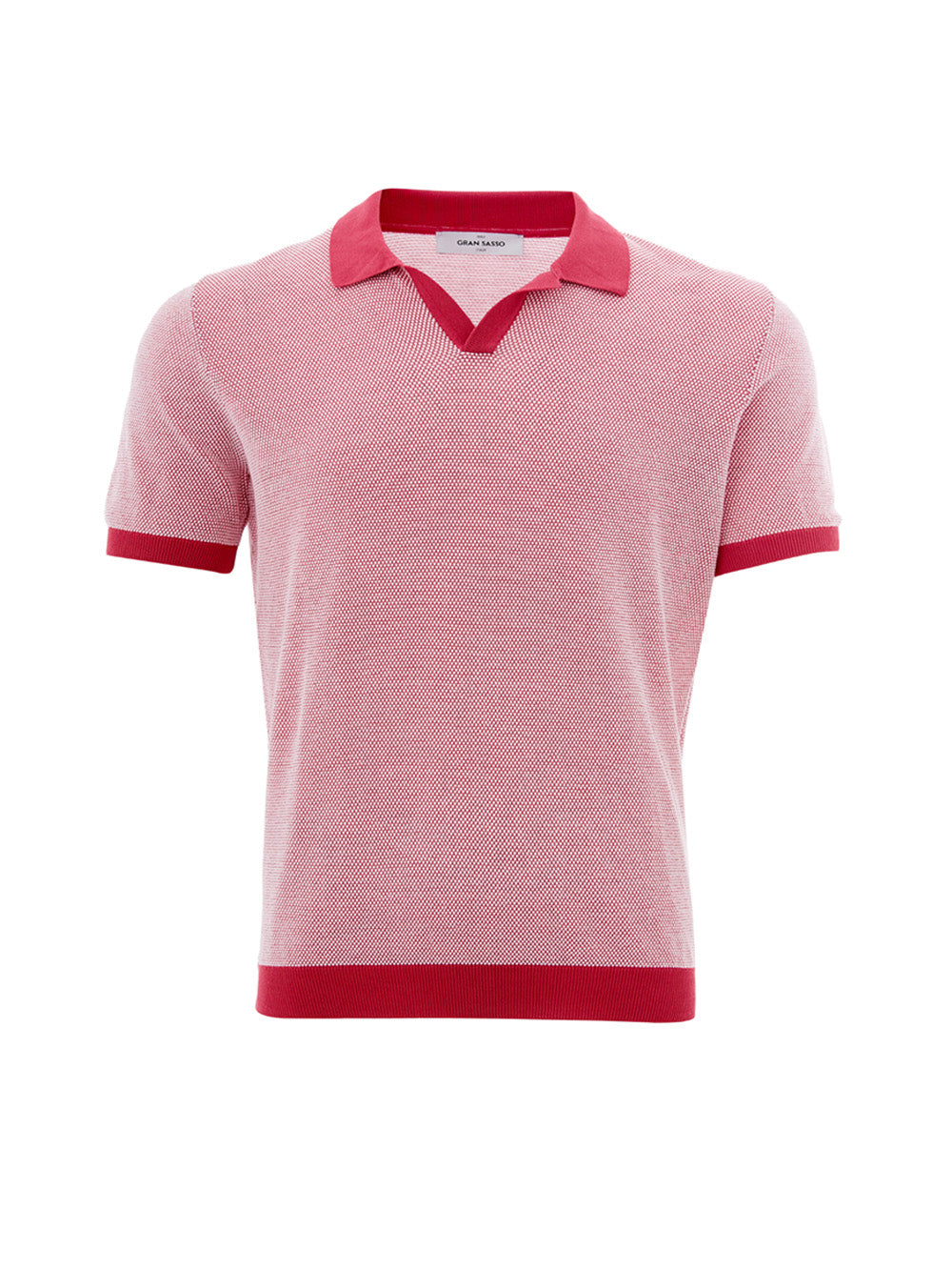 Discover the epitome of Italian craftsmanship with this stunning, brand new V-Neck polo shirt by Gran Sasso. Boasting a distinctive pink-red hue, this piece perfectly blends traditional style with contemporary elegance, offering a regular fit for unsurpassed comfort. A subtle knitwear effect adds a touch of sophistication, making it a versatile addition to your wardrobe.