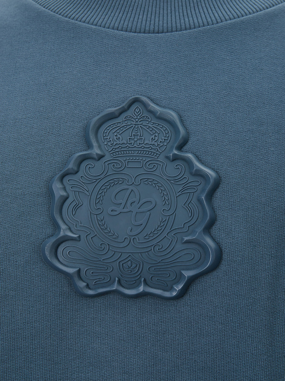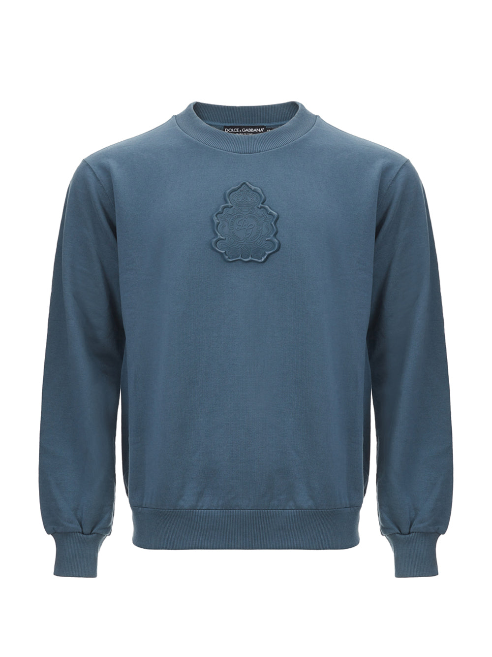 Step into the season with sophistication in this Petrol Blue sweatshirt from the renowned Dolce & Gabbana. Exuding elegance with its vibrant color and crafted from 100% soft Cotton, this piece boasts a luxurious feel with its ton sur ton rubber logo precision attached to the front. Ideal for a regular fit, it ensures comfort as well as style, making it a must-have for any fashion-savvy individual.