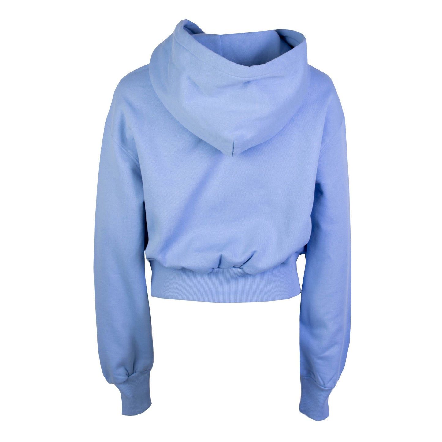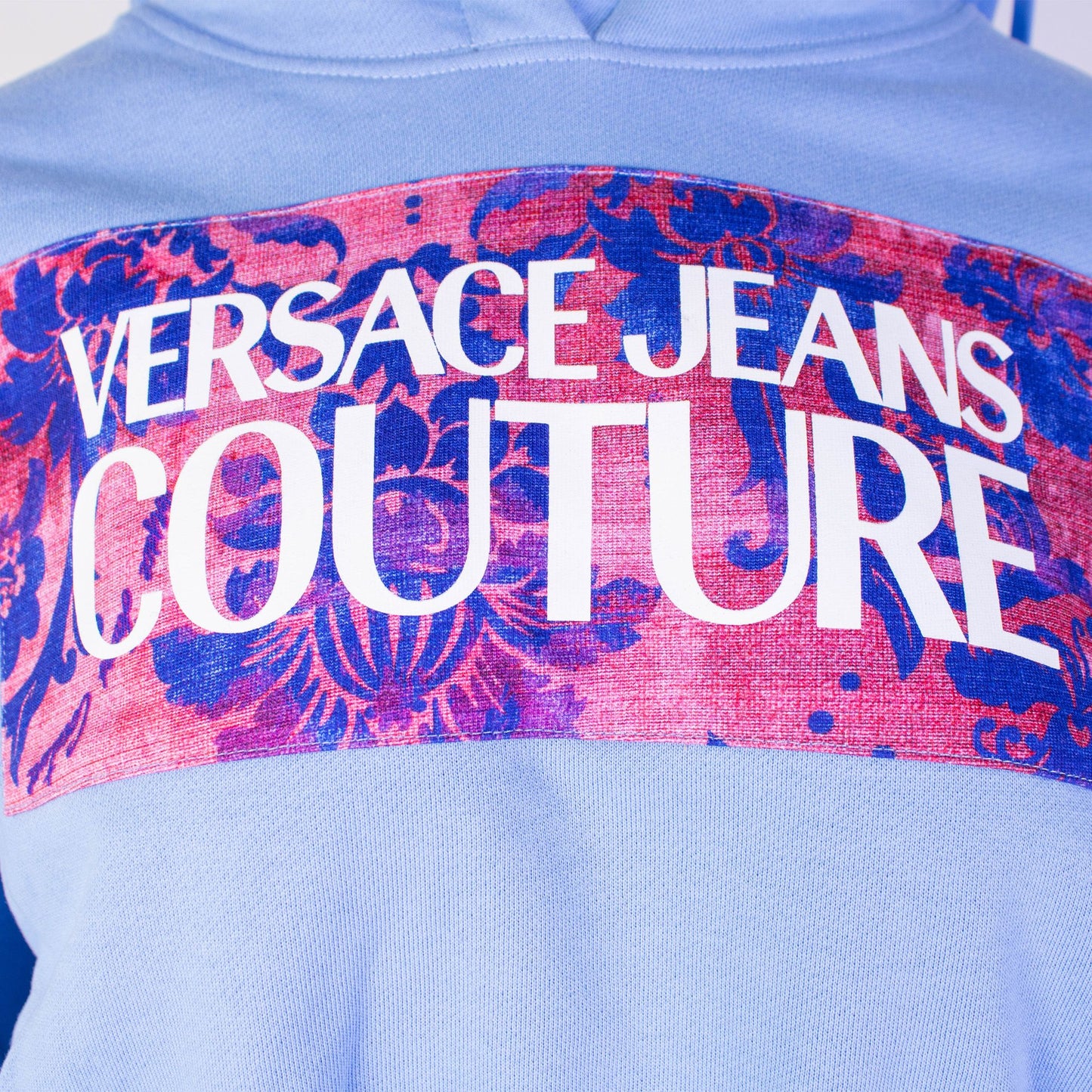Discover the epitome of casual luxury with our stunning, new with tags Light Blue Sweatshirt from Versace Jeans. This relaxed-fit cropped sweatshirt features an adjustable hood and wide, long sleeves for an effortlessly chic silhouette. Accented with a contrasting logo patch with a ‘Velvet’ effect, it offers a touch of opulence to your everyday wardrobe. Crafted with the finest cotton and meticulously made in Turkey, this piece is a testament to Versace Jeans’ commitment to quality and style.