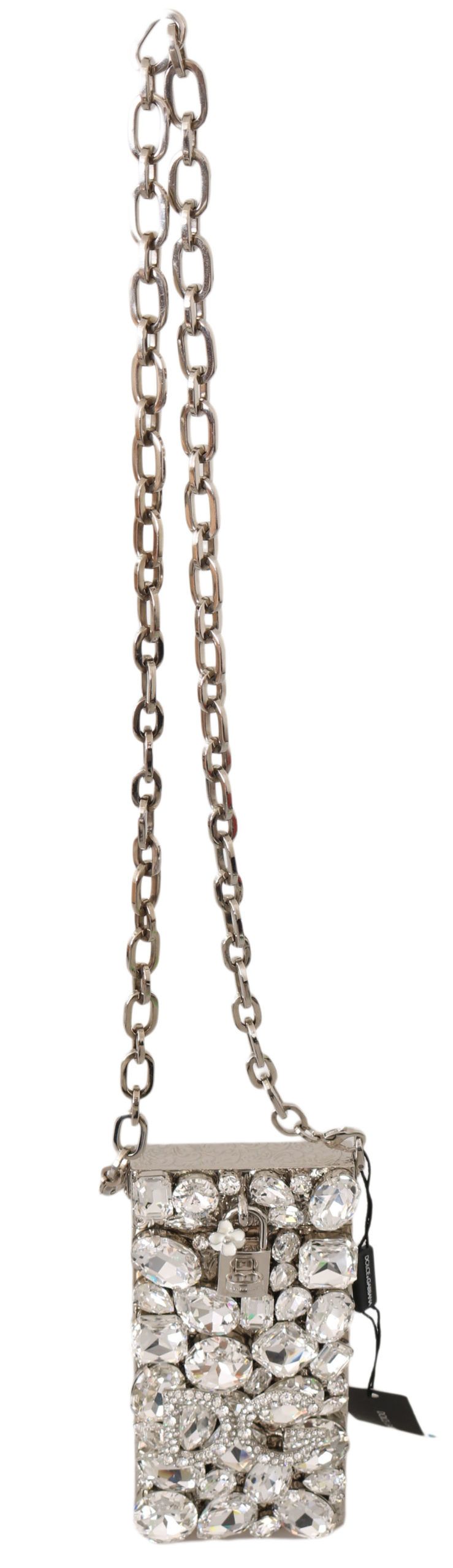 Discover luxury at its finest with the exquisite Dolce & Gabbana crystal embellished silver crossbody purse. Opulent palladium and sparkling clear crystals create a dazzling affair that commands attention. This brand new, with tag piece represents the pinnacle of Italian craftsmanship and offers an elegant way to carry your essentials.