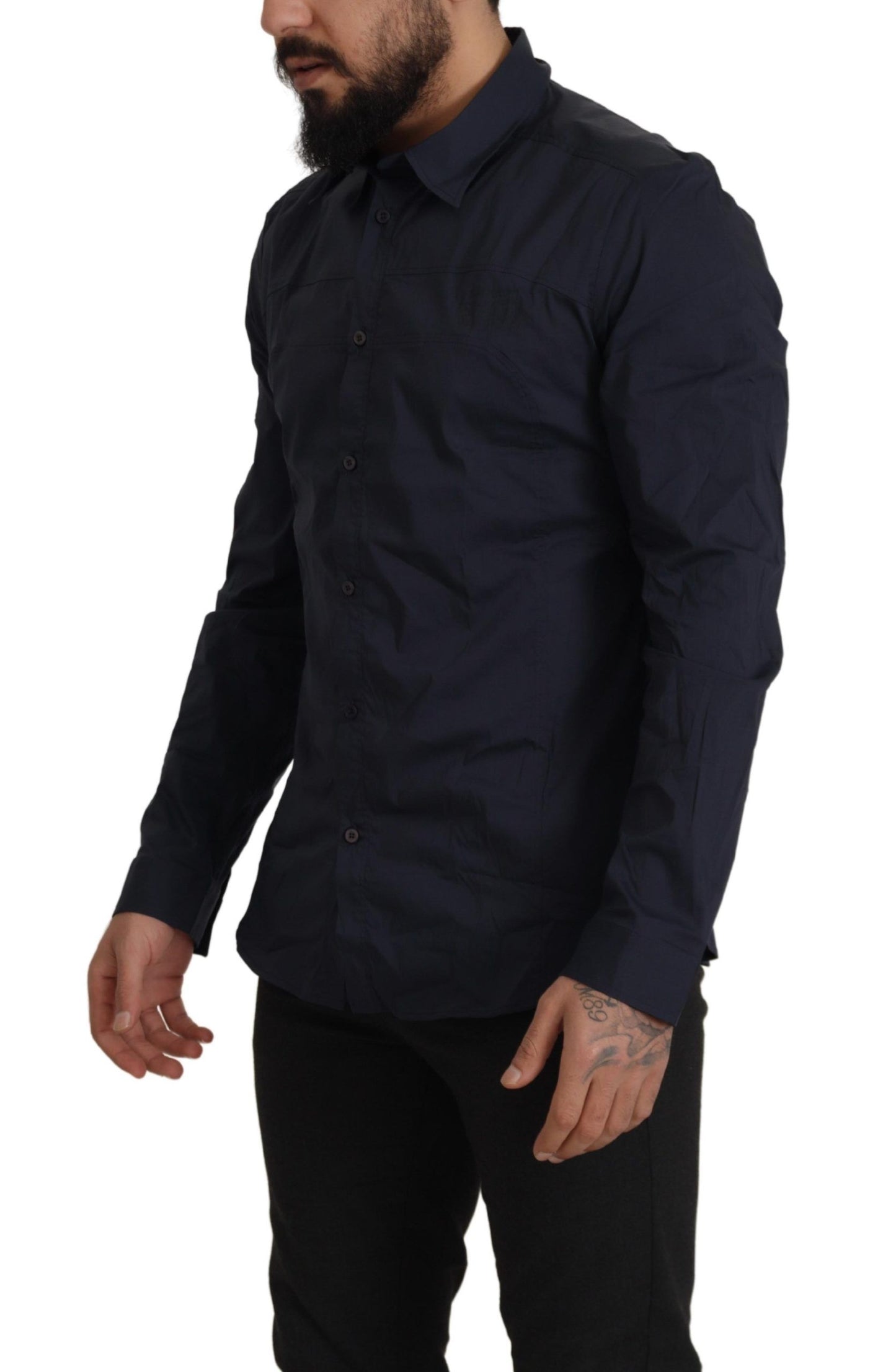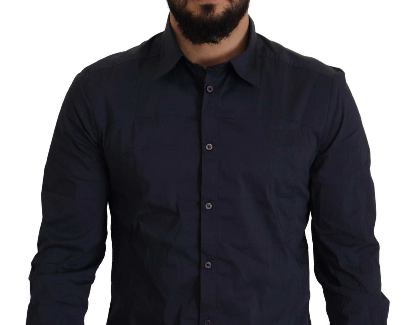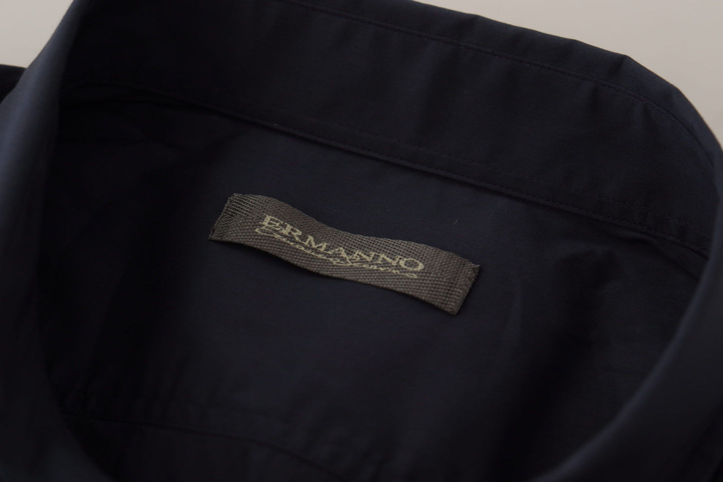 Discover sophistication with this absolutely stunning, 100% Authentic Ermanno Scervino cotton blend dress shirt. Perfect for the modern gentleman seeking a slim fit silhouette and Italian craftsmanship. The dark blue hue is versatile for business or pleasure, while the subtle logo details add a touch of luxury. Crafted from a premium blend, this shirt ensures comfort and durability. Elevate your wardrobe with this classic neck, long-sleeved shirt featuring front button closure—all made in Italy.