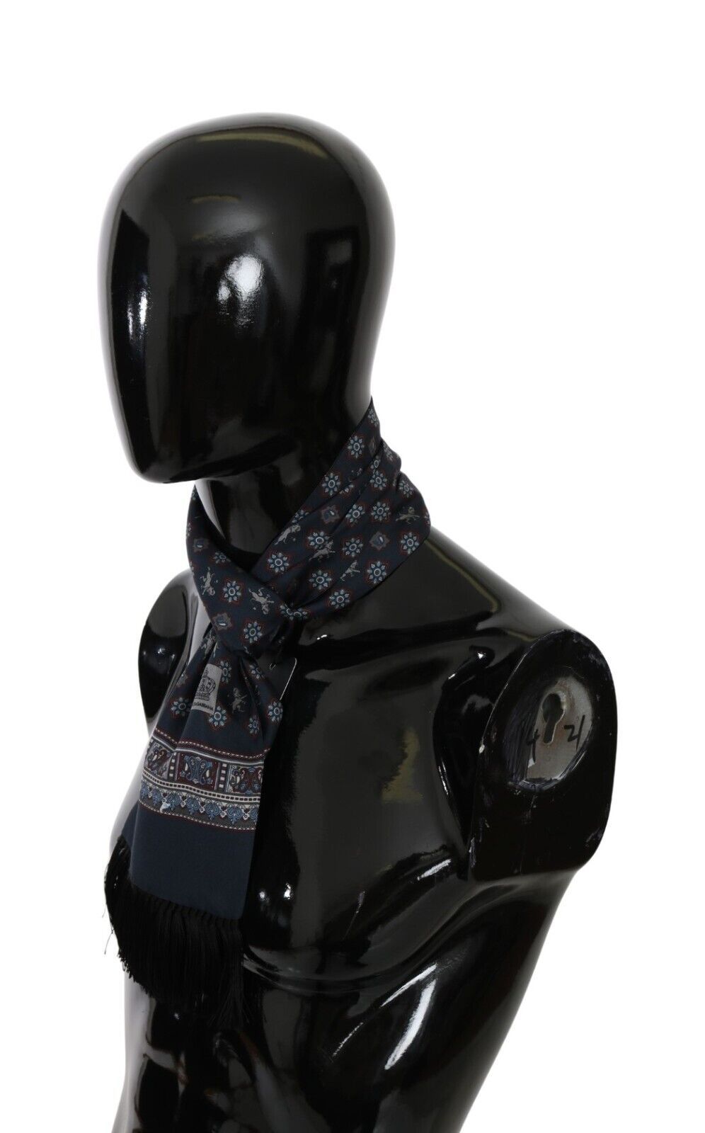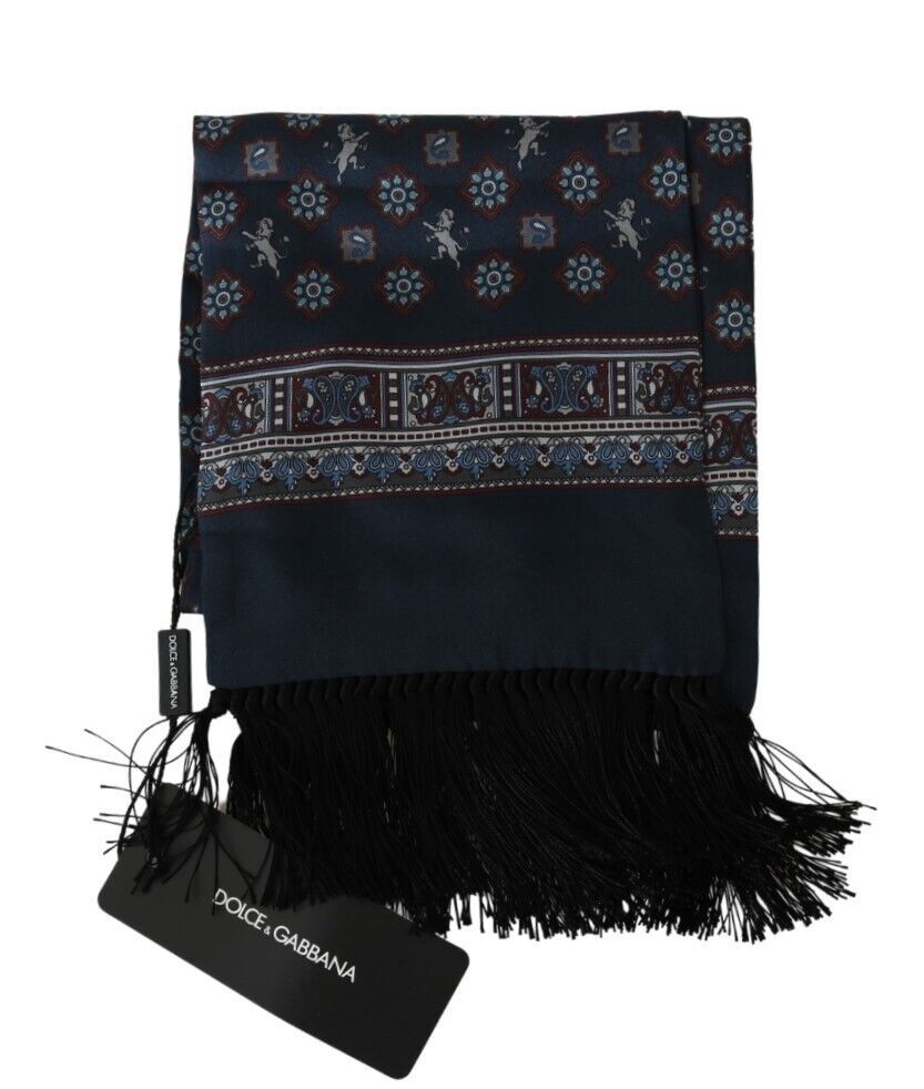 Indulge in the epitome of luxury with this exquisite slim silk scarf from Dolce & Gabbana. Crafted with impeccable attention to detail, this gorgeous scarf features an elegant fringe design and a sophisticated dark blue hue that’s sure to add a touch of class to any outfit. The pure silk material boasts a luxurious feel against the skin, while the solid color lining ensures a versatile and polished look. Displaying the renowned Dolce & Gabbana logo, this made-in-Italy piece is a testament to high-end fashion and style. Perfect for accessorizing, it will elevate your ensemble effortlessly.
